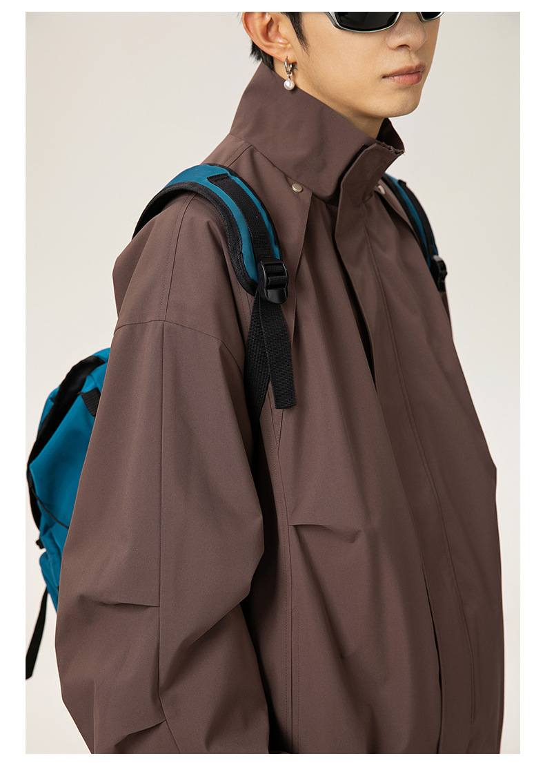 방수 스탠드 칼라 루즈핏 디자인 워크웨어 재킷 봄용 레이어드 플리츠 아웃도어 재킷 트렌디 브랜드 코트