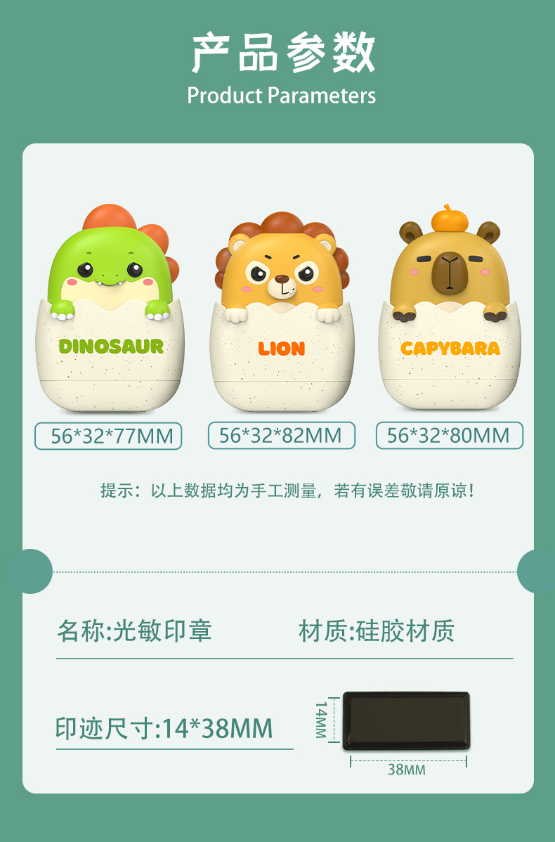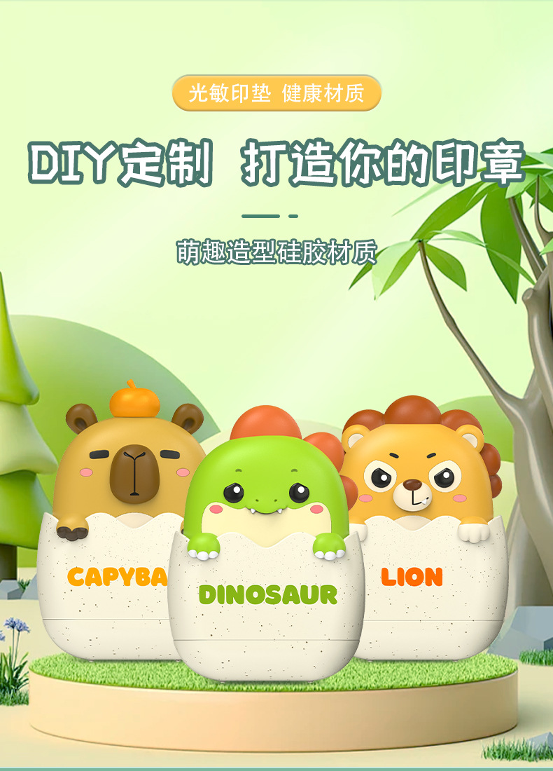 새로운 실리콘 어린이 이름 스탬프 소재 도매 봄 프레스 만화 사자 공룡 마법의 계란