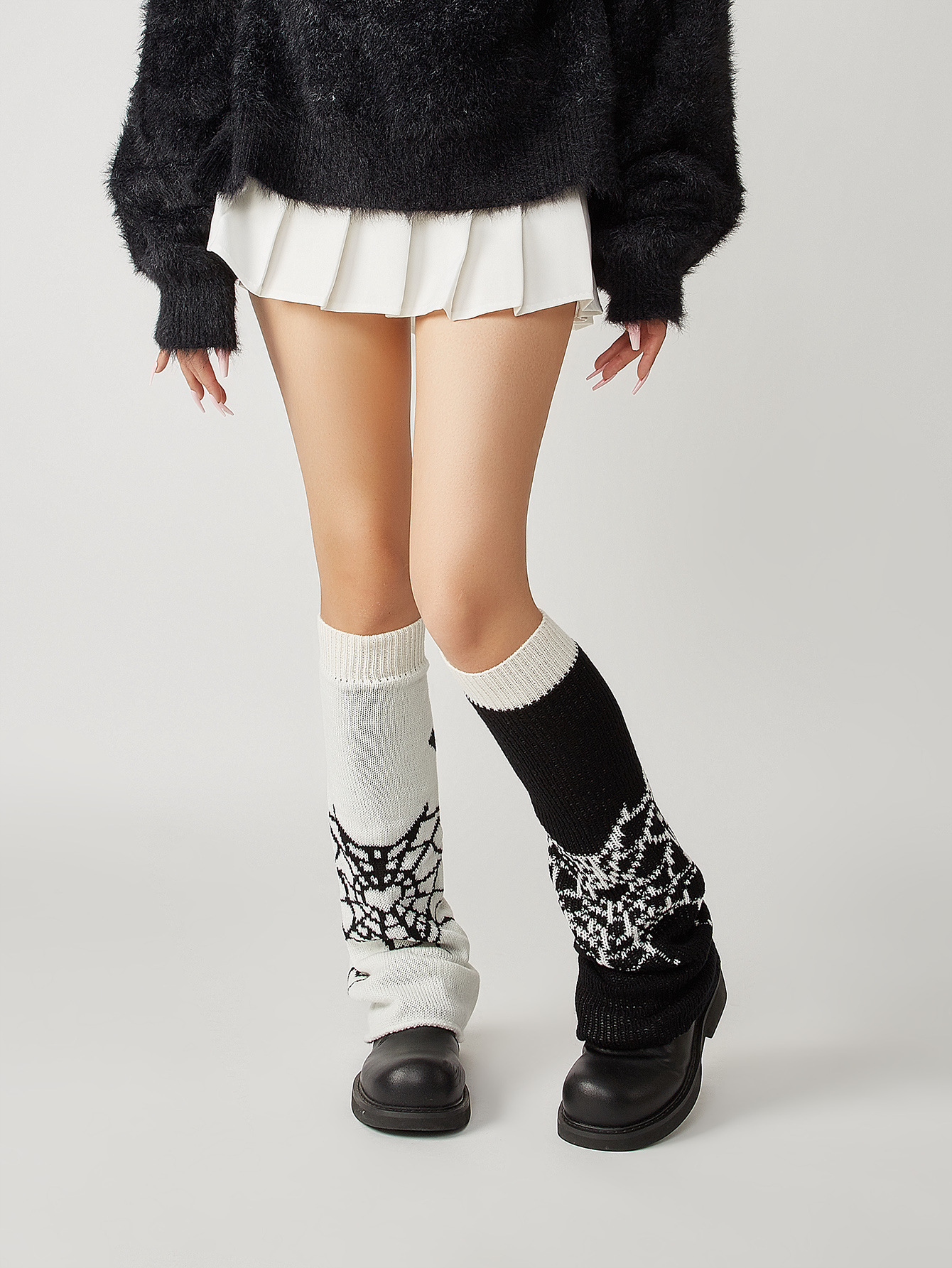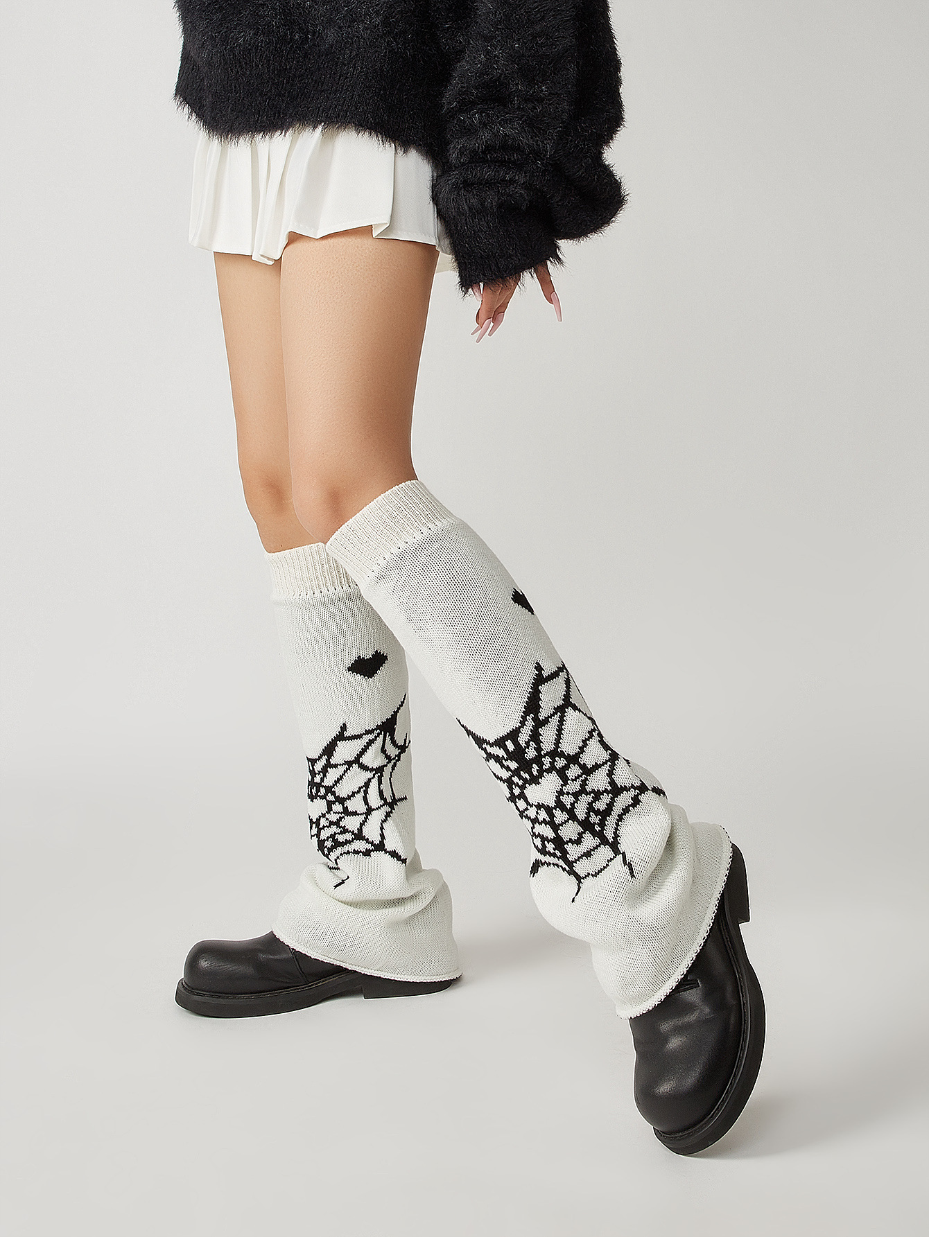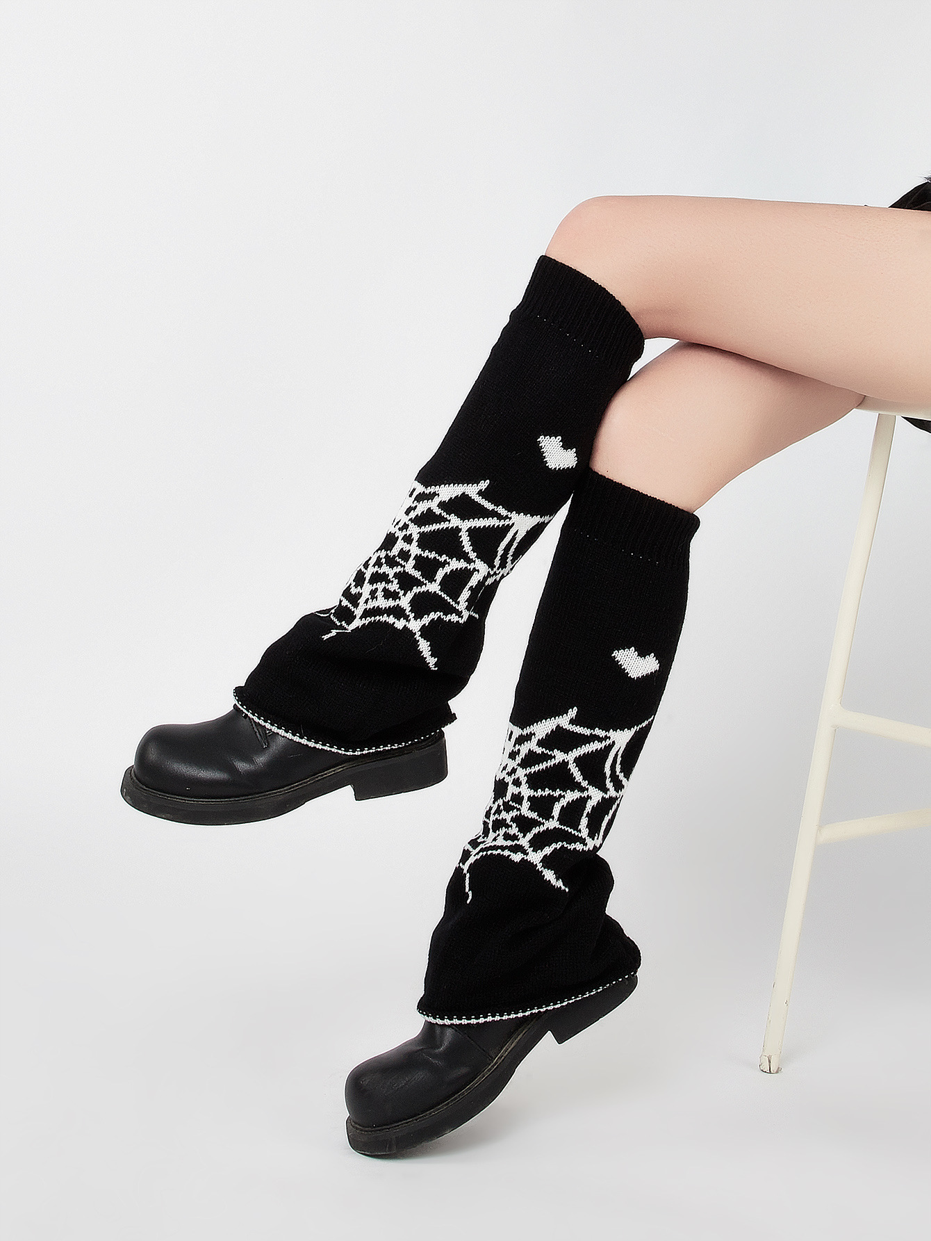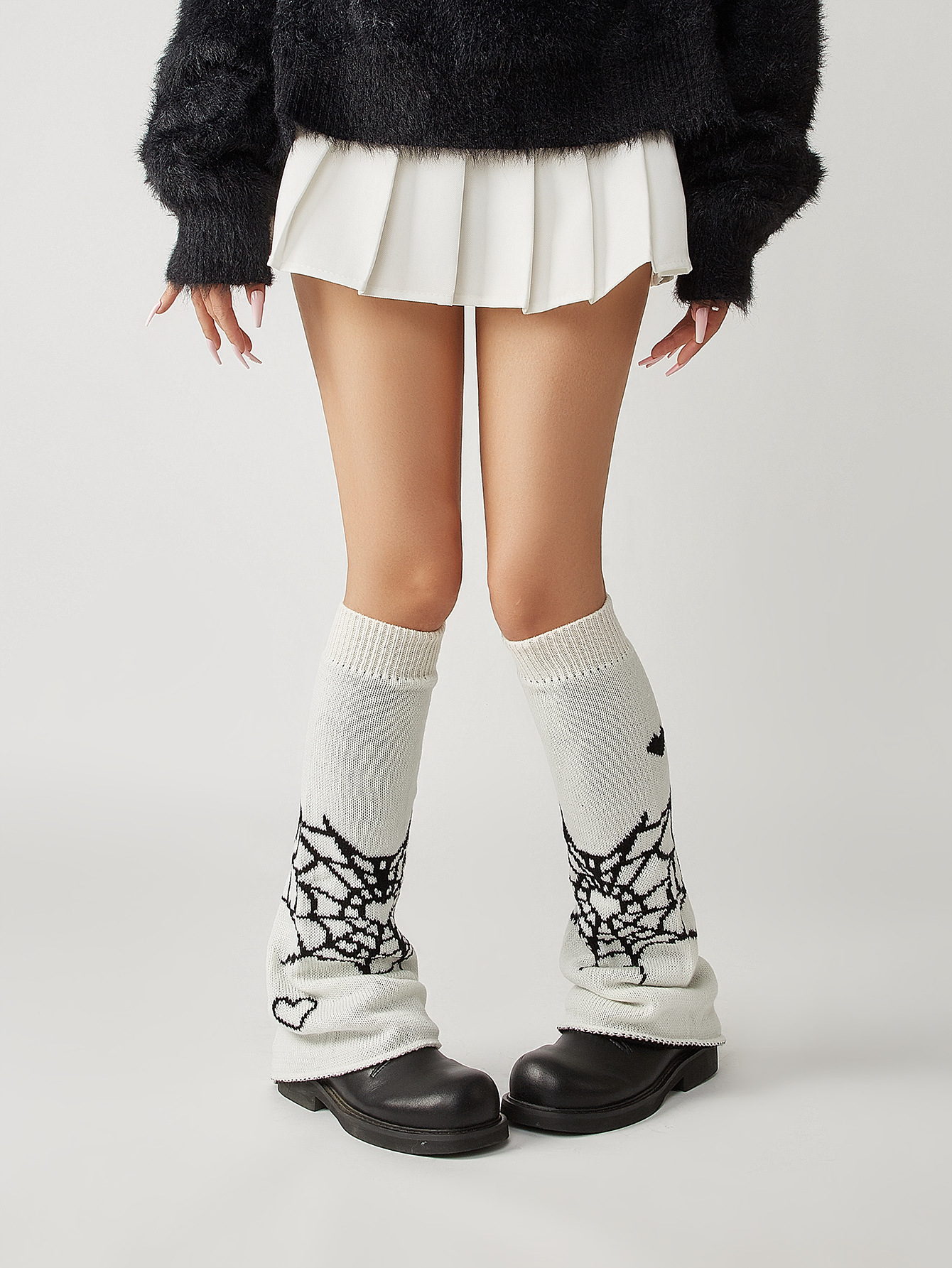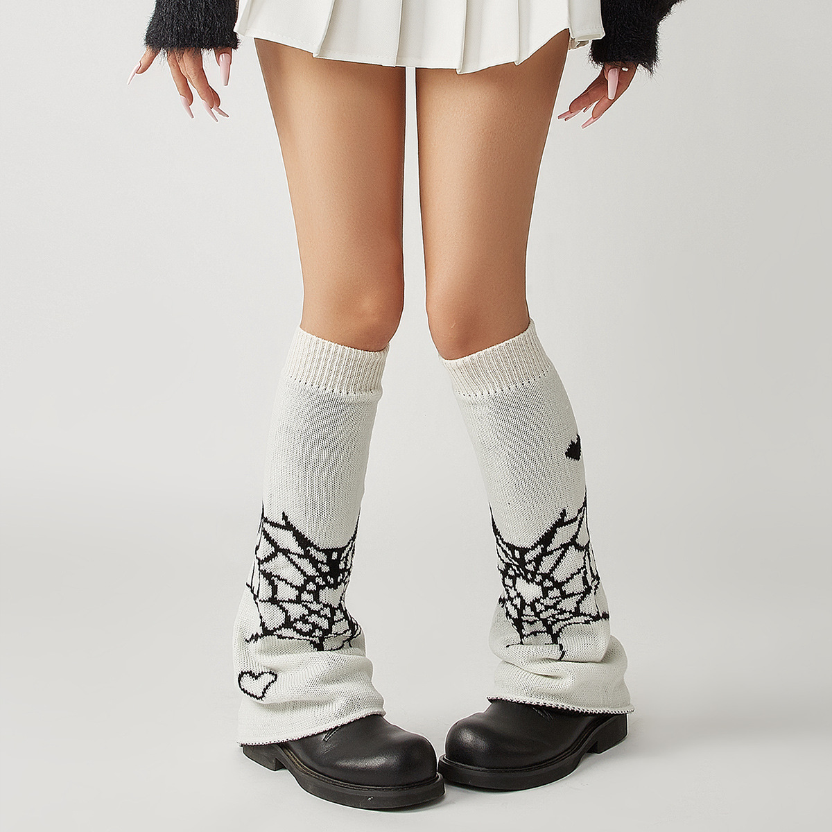 스파이더 웹 러브 니트 양말 여성용 다리 커버 y2k 가을 중간 튜브 스택 어두운 하위 문화 신양말