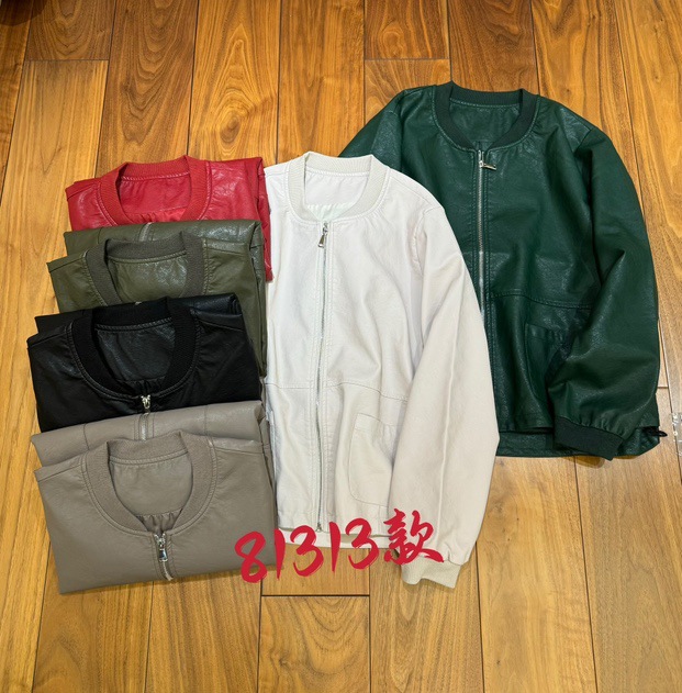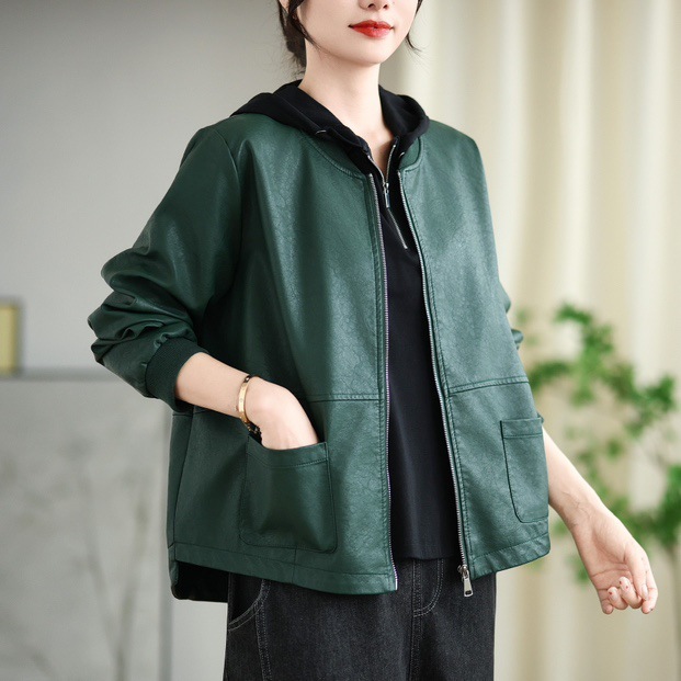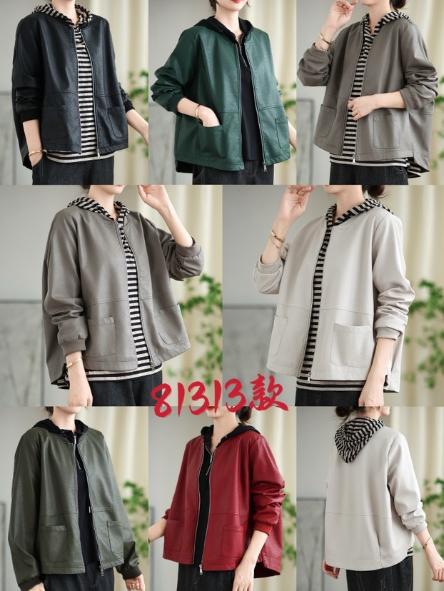 수직 칼라 긴 소매 PU 가죽 자켓 2024 가을 새로운 플러스 사이즈 느슨한 지퍼 재킷 81313스토어 가기