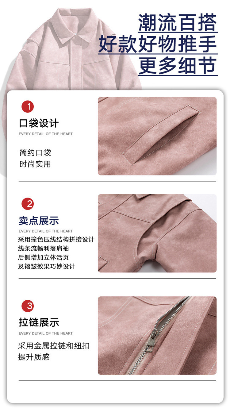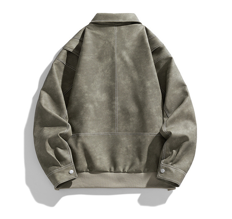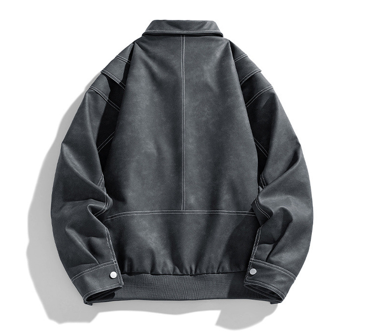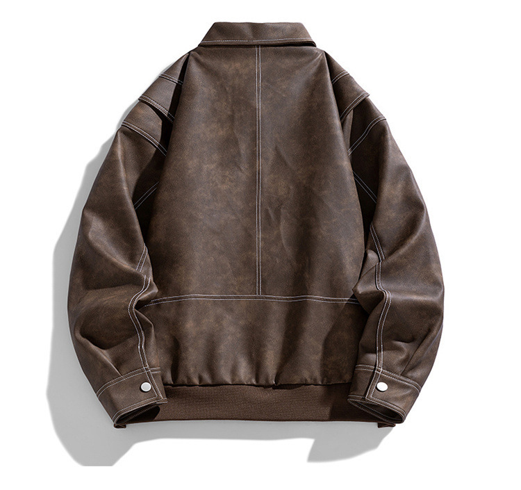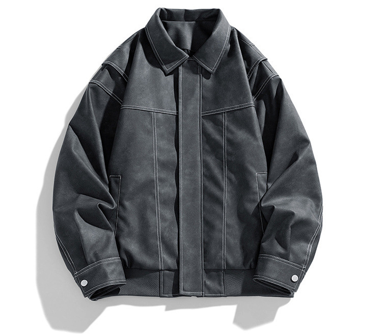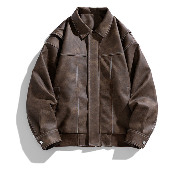 美式复古PU皮衣外套男高街宽松翻领夹克潮流春秋季高季休闲外套男