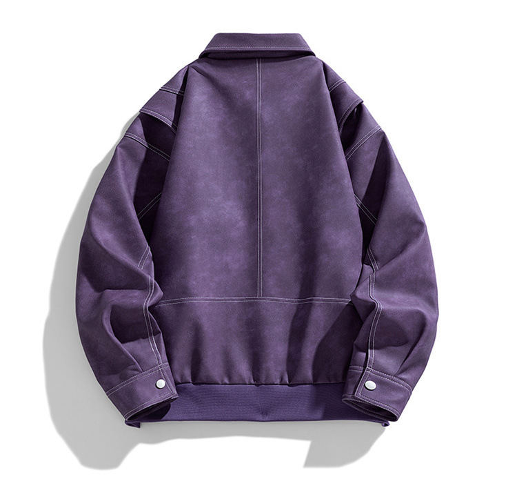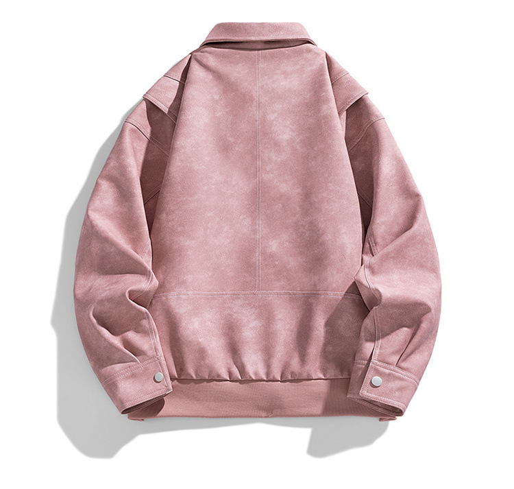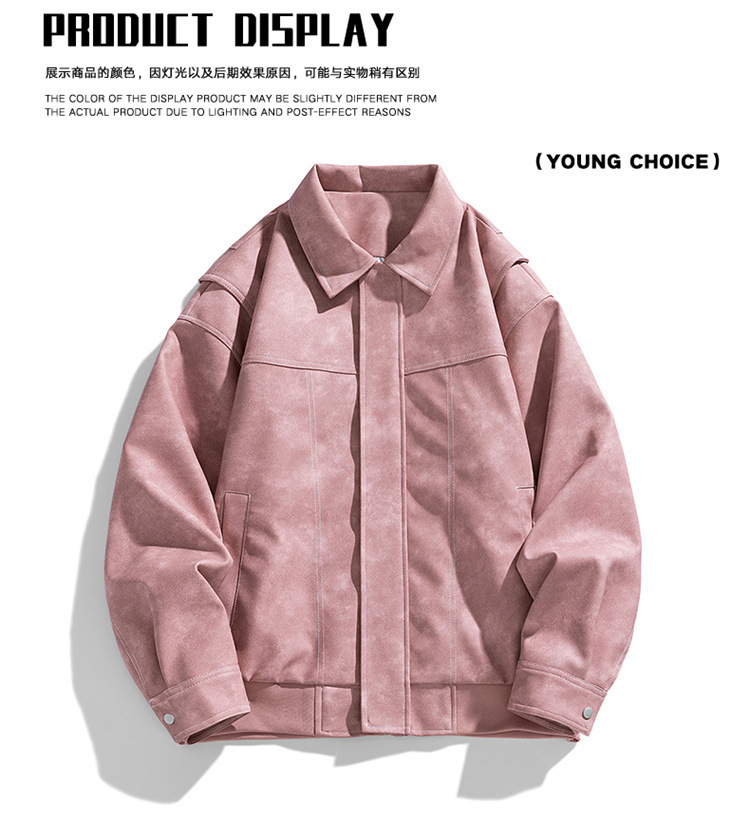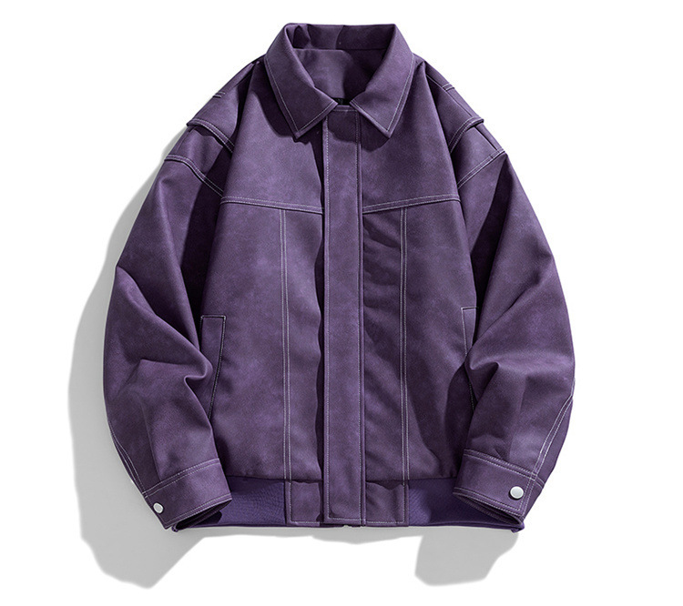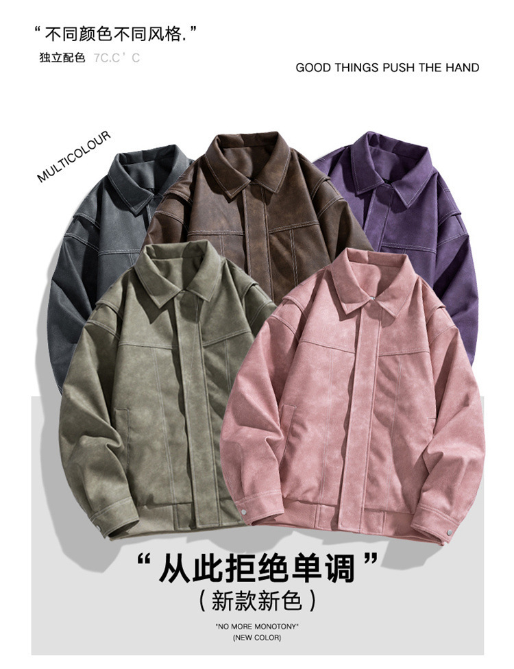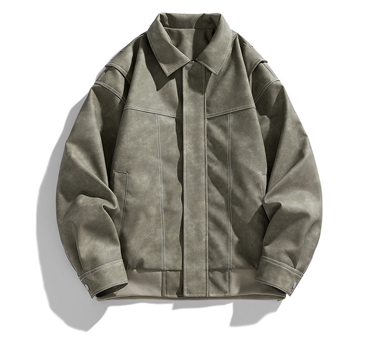 美式复古PU皮衣外套男高街宽松翻领夹克潮流春秋季高季休闲外套男