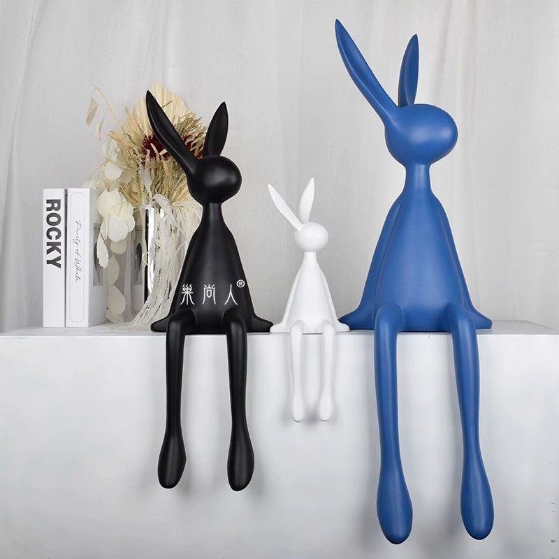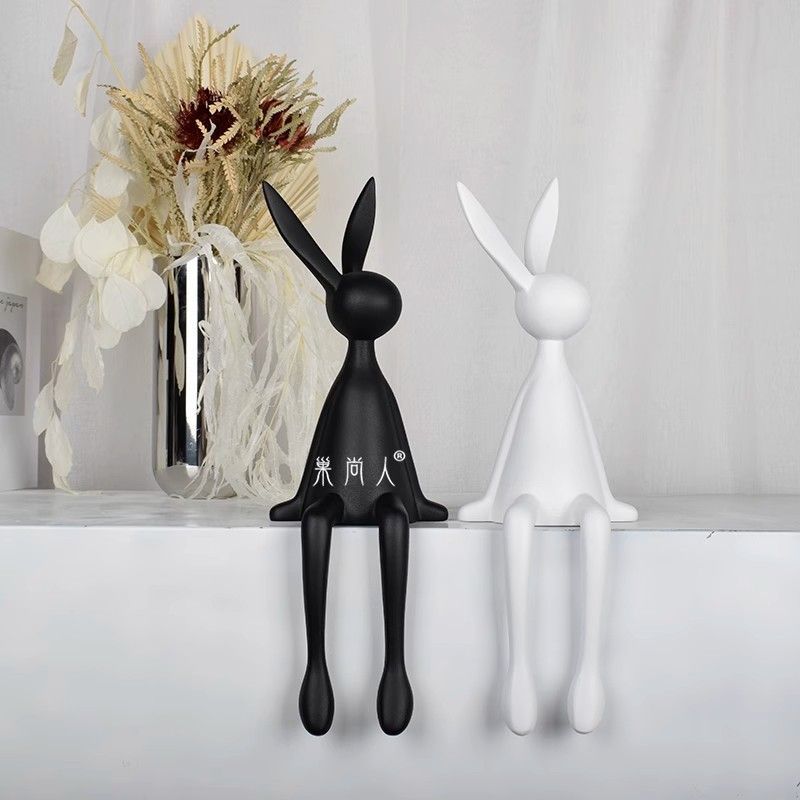 가벼운 고급 고급 검은 토끼 앉아 자세 장식품 거실 입구 연구 TV 캐비닛 와인 캐비닛 배경 벽 바탕 화면스토어 가기