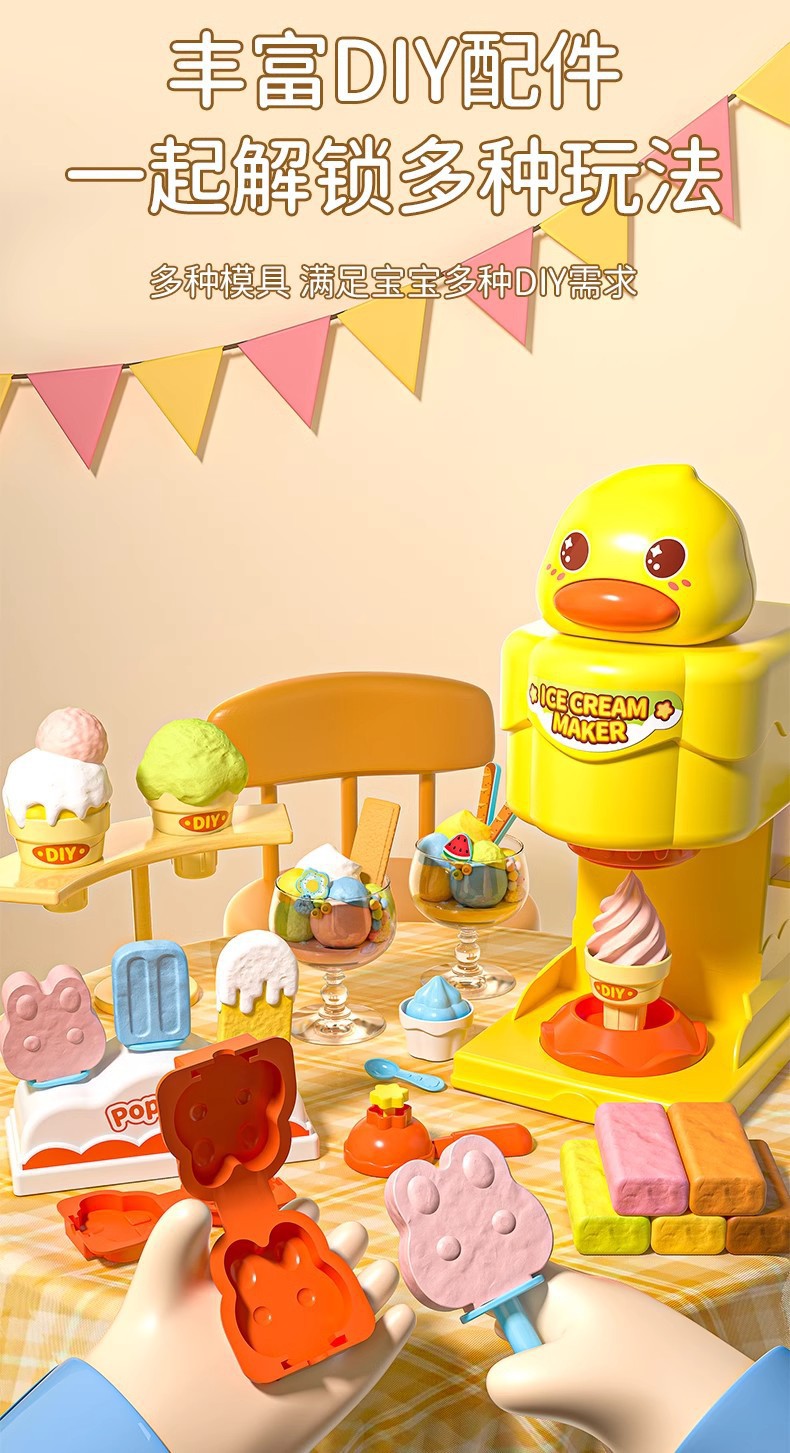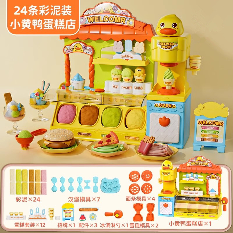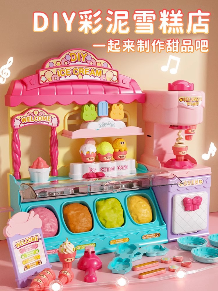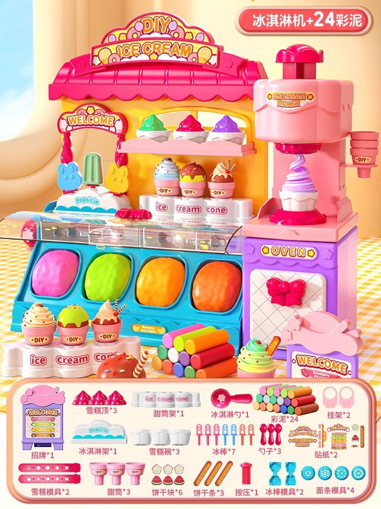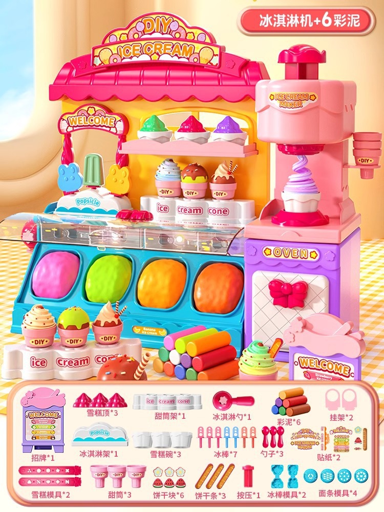 장난감 소녀 생일 선물 컬러 진흙 아이스크림 기계 무독성 울트라 라이트 클레이 플라스틱 금형 남성 식품 등급스토어 가기