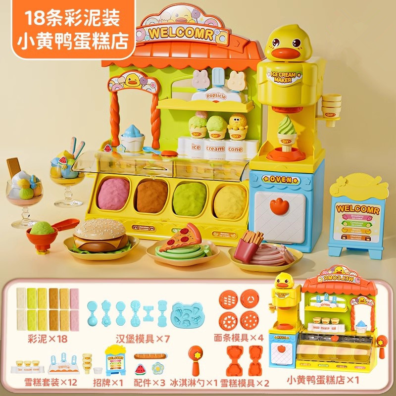 • 【⭐절묘한 선물 상자] DIY 다기능 아이스크림 가게 + 클레이 18개 + 햄버거 7종 세트