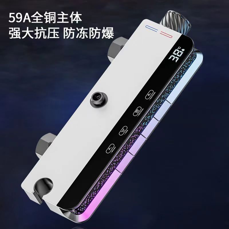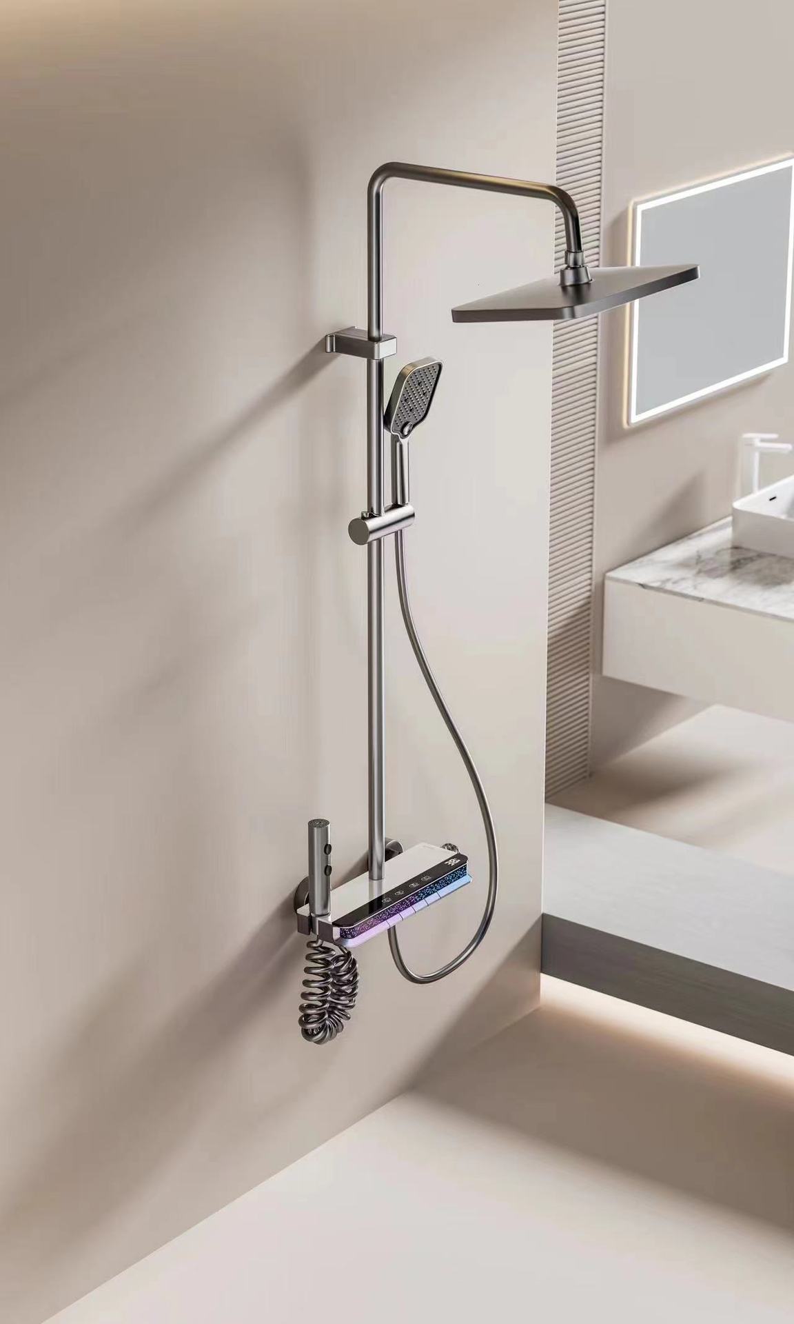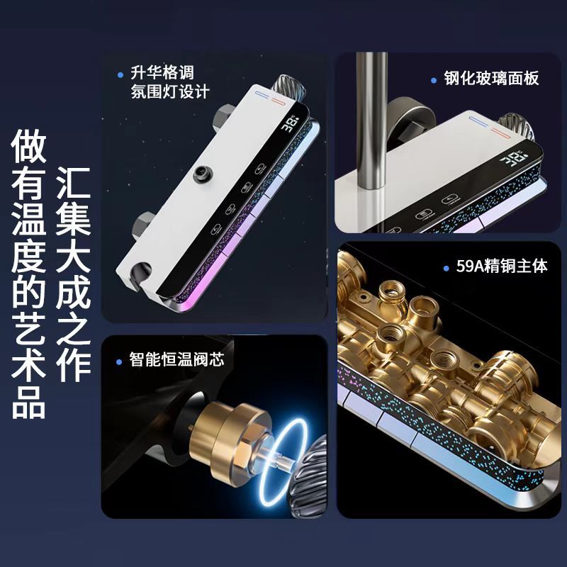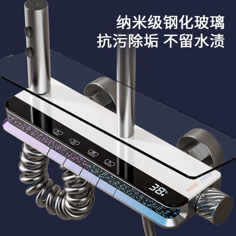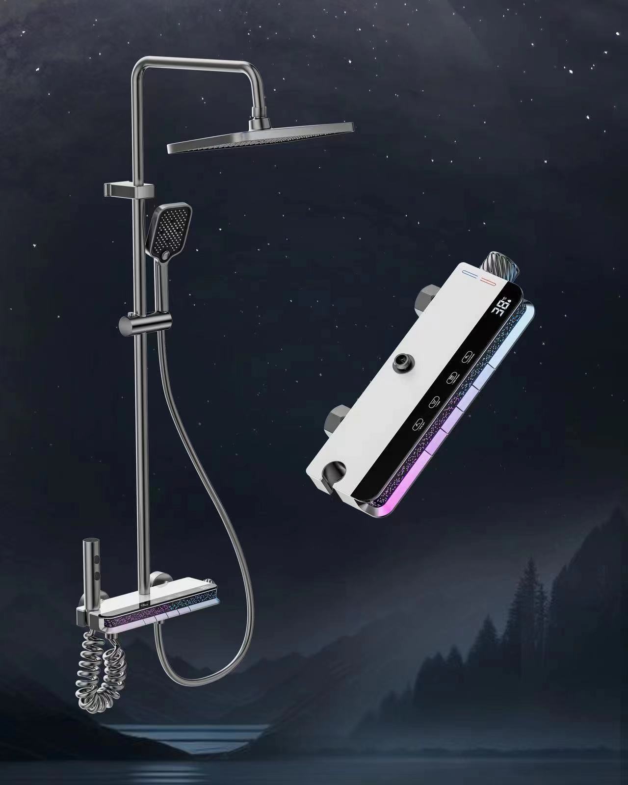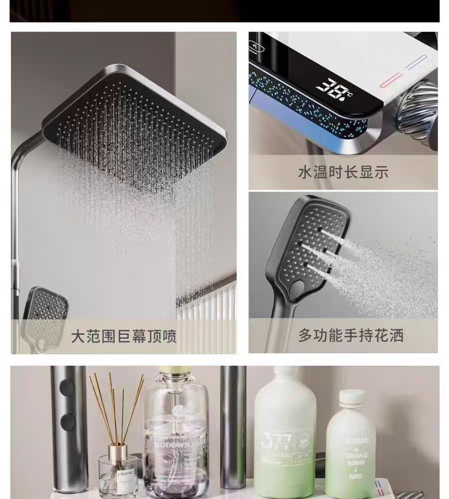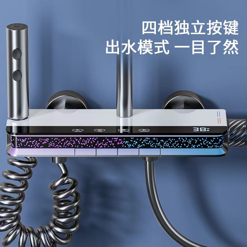지능형 미세 구리 일정한 온도 샤워 세트 가정용 디지털 디스플레이 욕실 비 부스터 총 회색 샤워 헤드