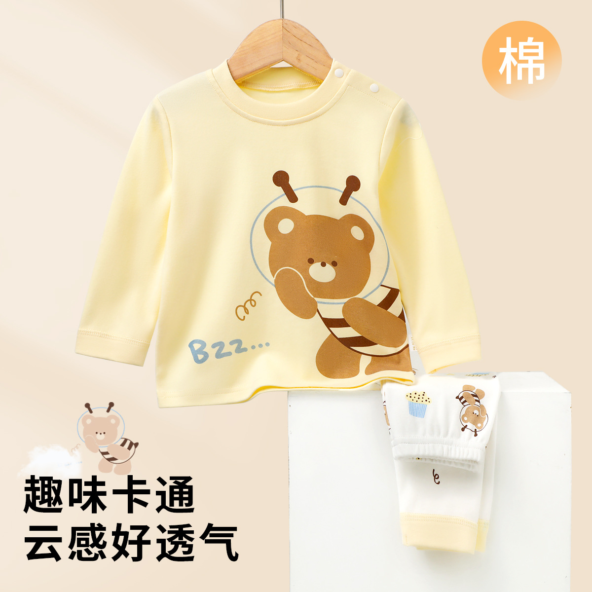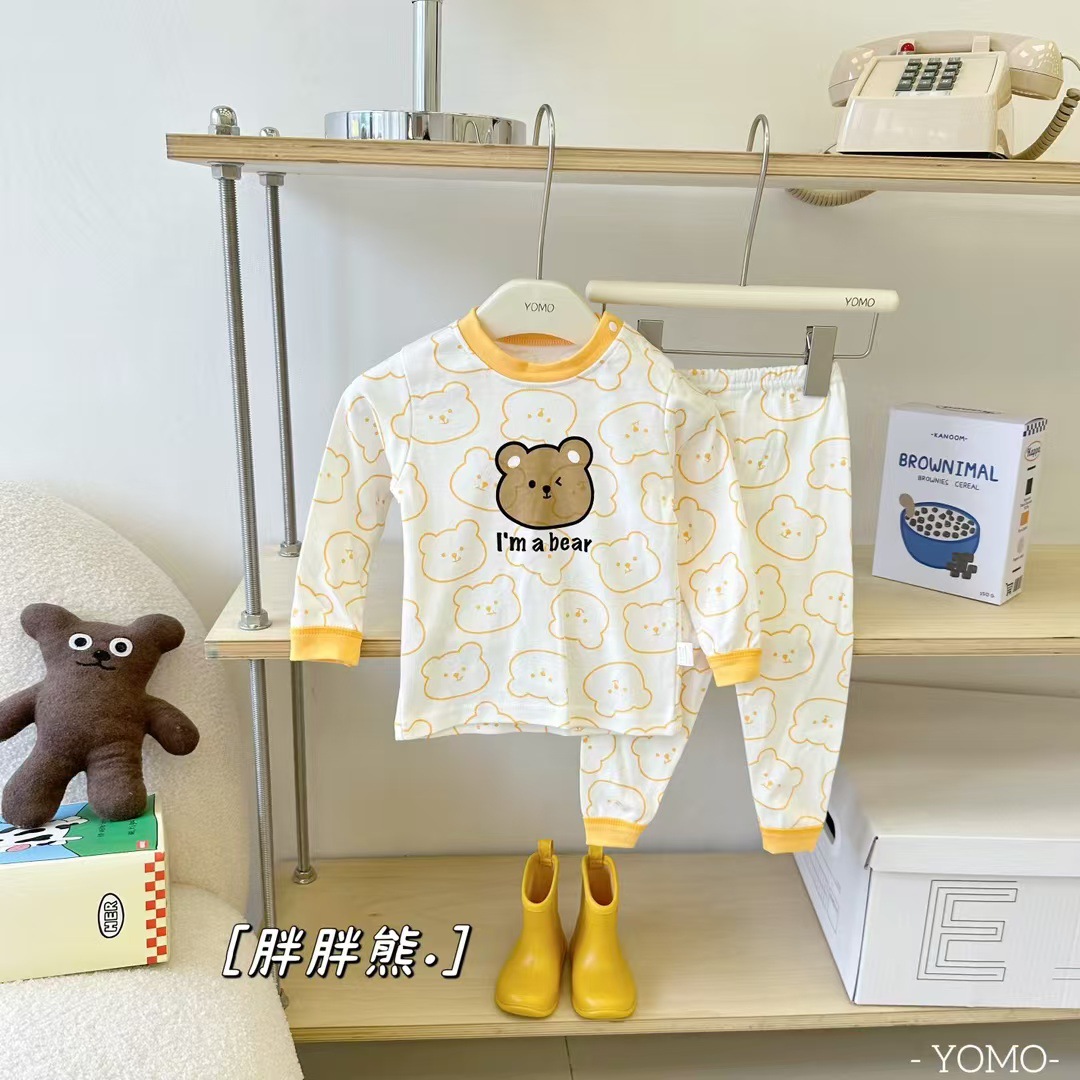 2414 가을 새 아기 가을 옷과 바지 세트 편평한 허리 면 속옷 기본 홈 옷 소년 소녀스토어 가기