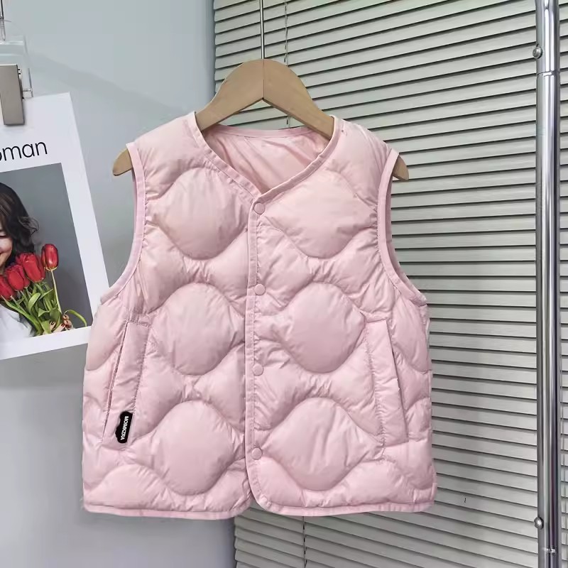 어린이 다운 재킷 내부 조끼 가을 및 겨울 새로운 빛과 얇은 4 가지 방지 조롱박 패턴 소년 및 소녀 대형 어린이 조끼