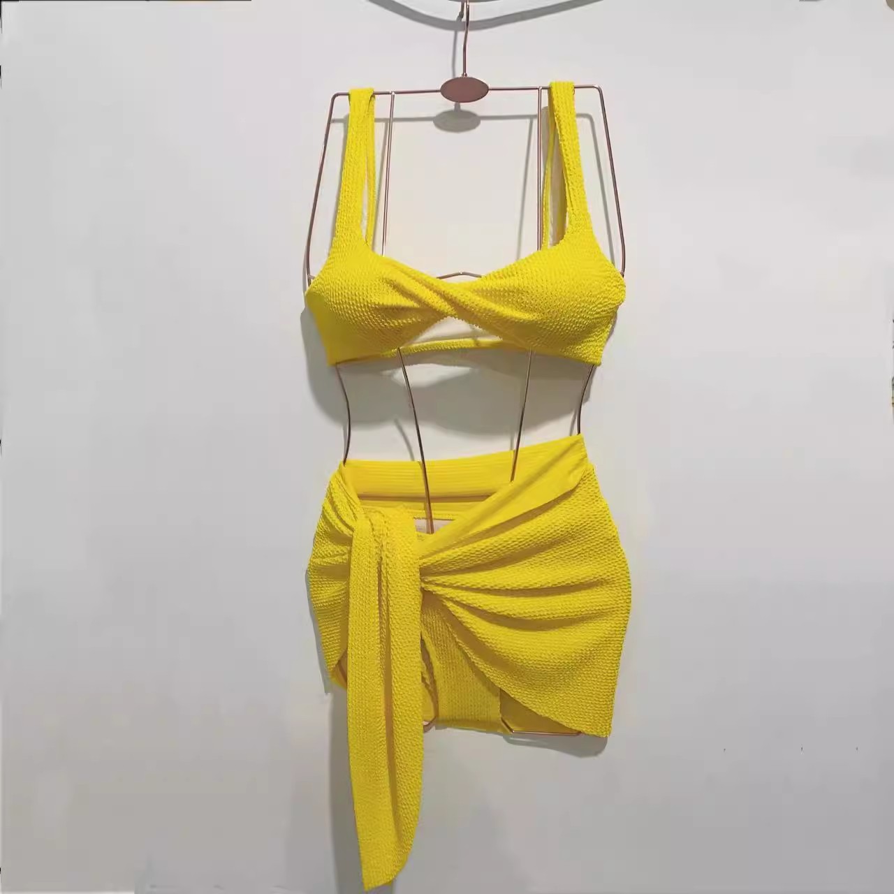 2024 새로운 노란색 신선한 인터넷 연예인 스트랩 푸시 업 분할 비키니 유럽과 미국의 섹시한 백리스 수영복