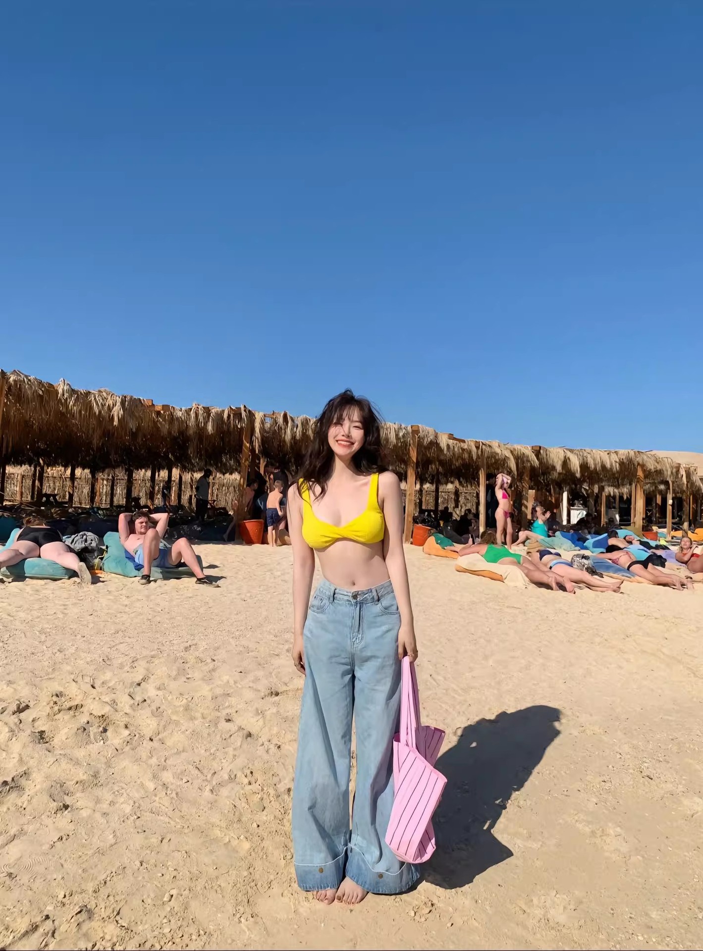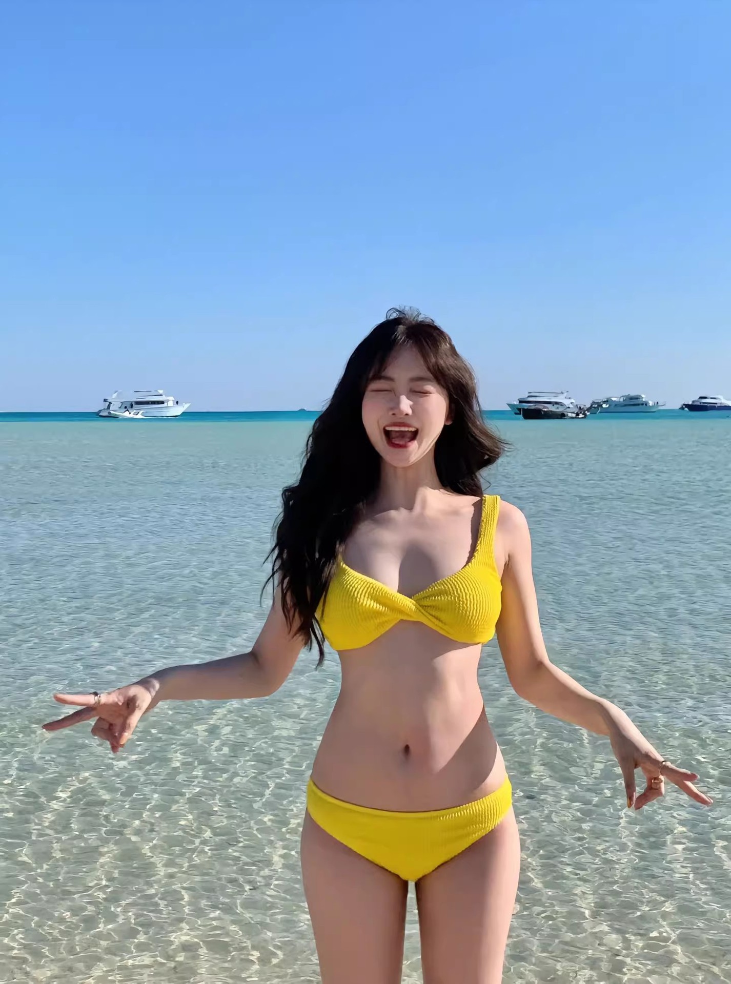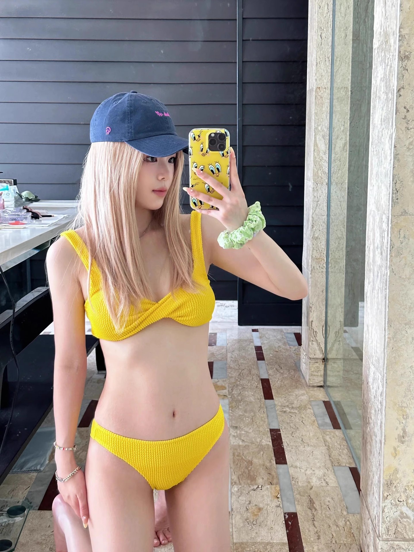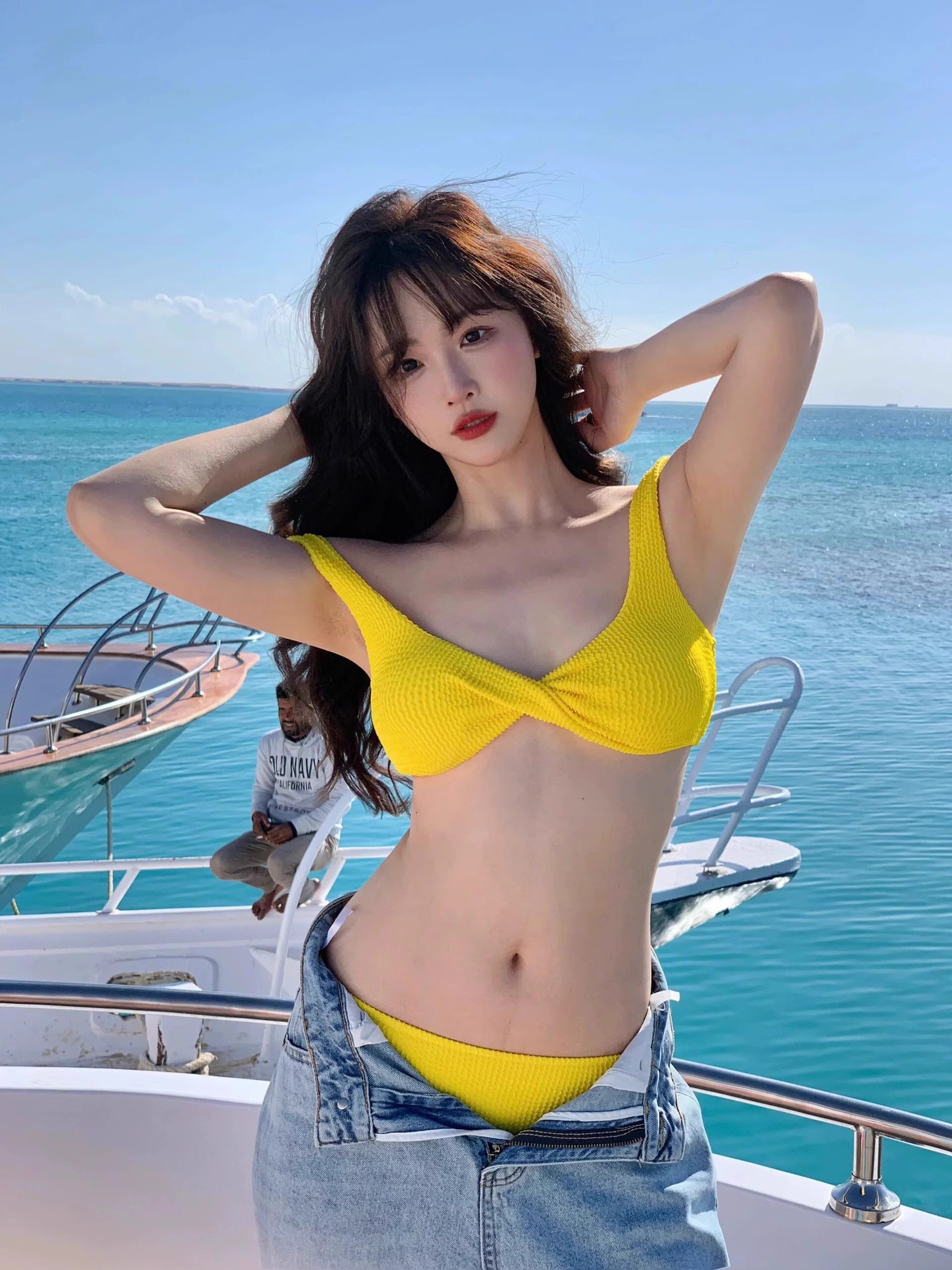 2024 새로운 노란색 신선한 인터넷 연예인 스트랩 푸시 업 분할 비키니 유럽과 미국의 섹시한 백리스 수영복스토어 가기