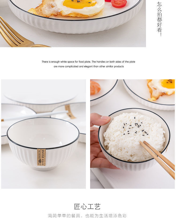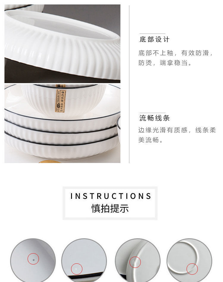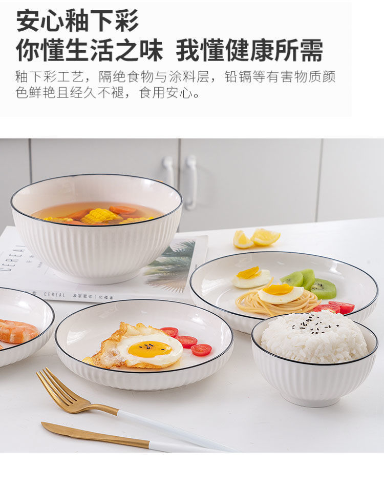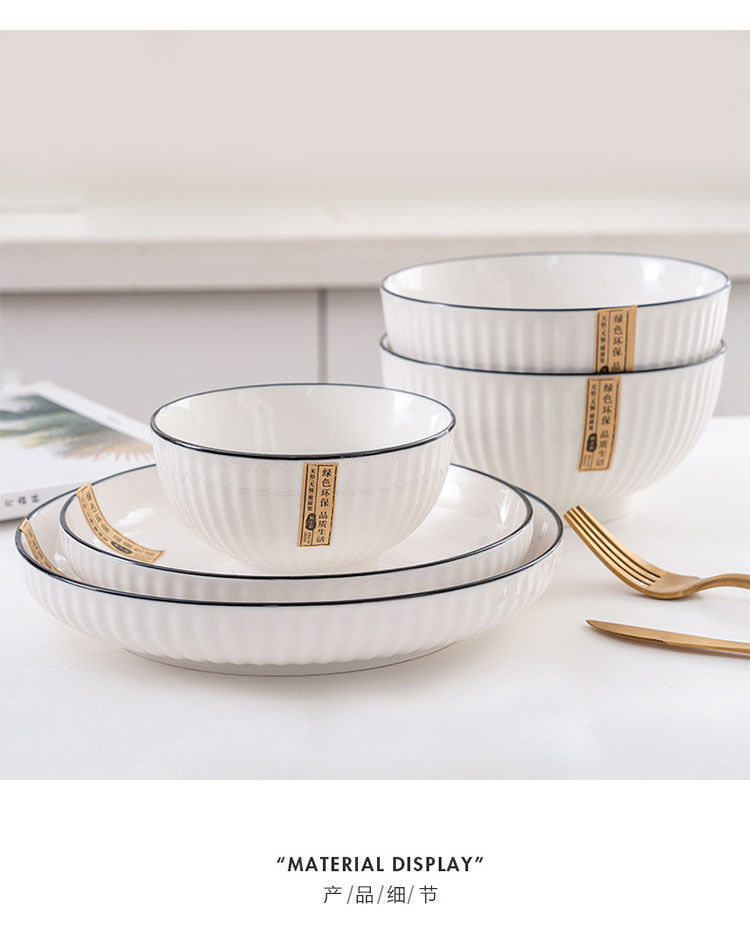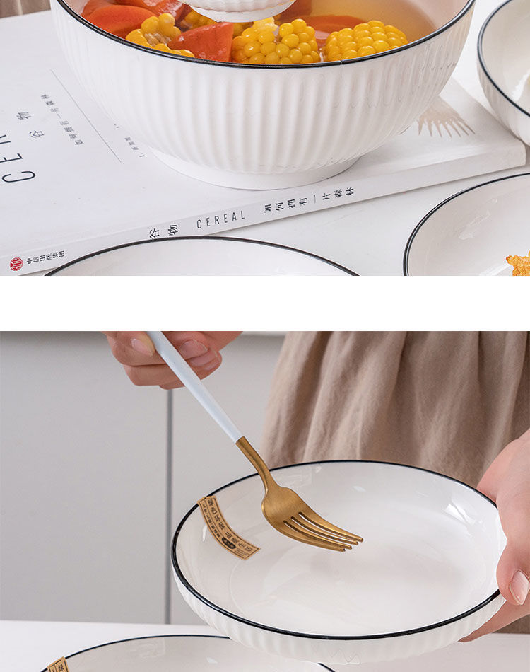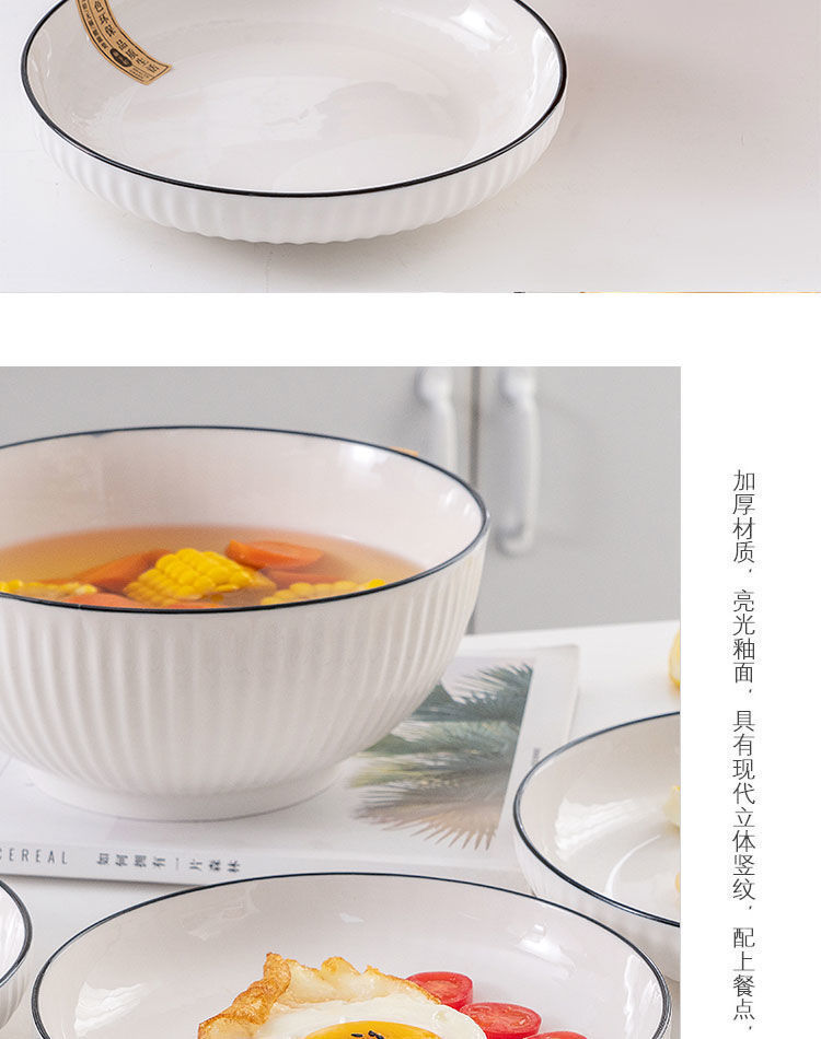 유약 색상 둥근 수직 패턴 세라믹 그릇과 접시 큰 수프 그릇 Jingdezhen 가정용 그릇 및 접시 그릇 국수 그릇 조합 행사스토어 가기