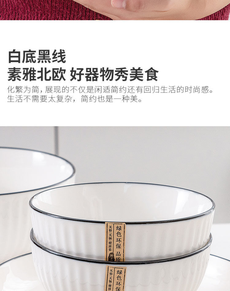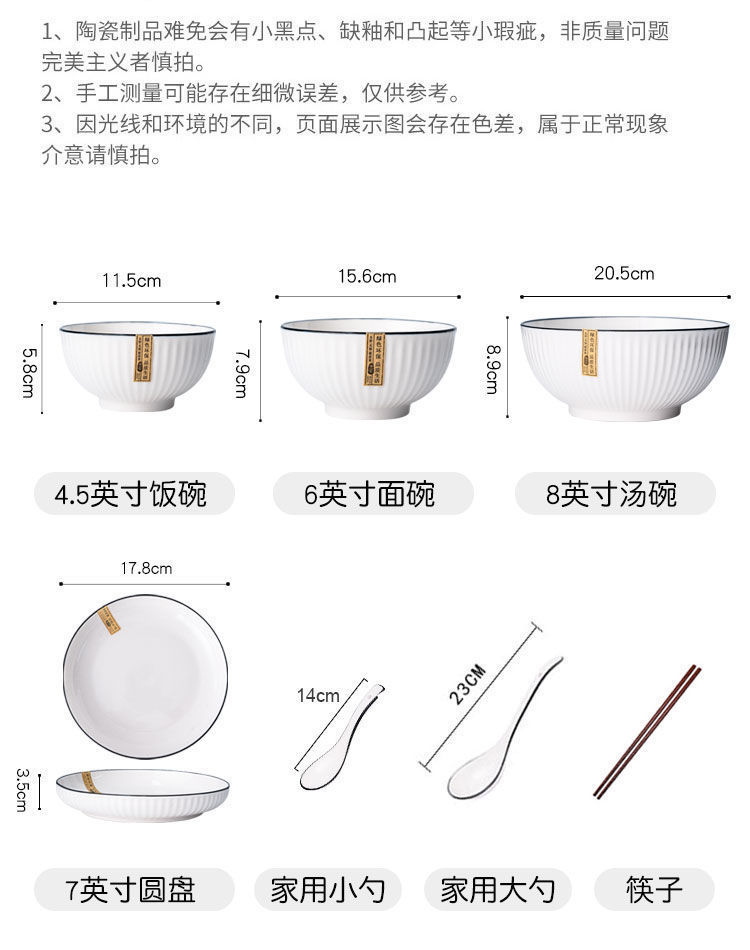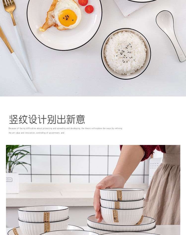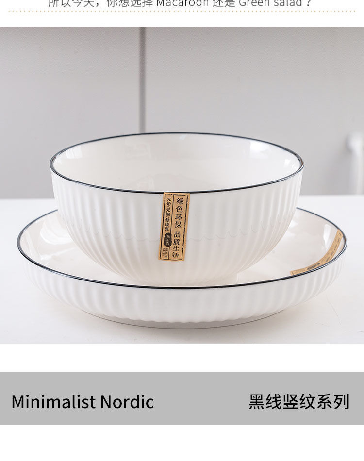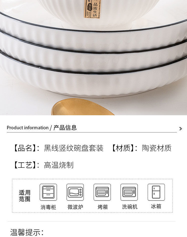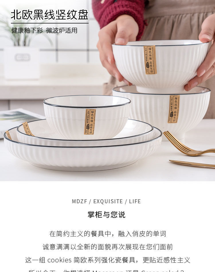 유약 색상 둥근 수직 패턴 세라믹 그릇과 접시 큰 수프 그릇 Jingdezhen 가정용 그릇 및 접시 그릇 국수 그릇 조합 행사스토어 가기
