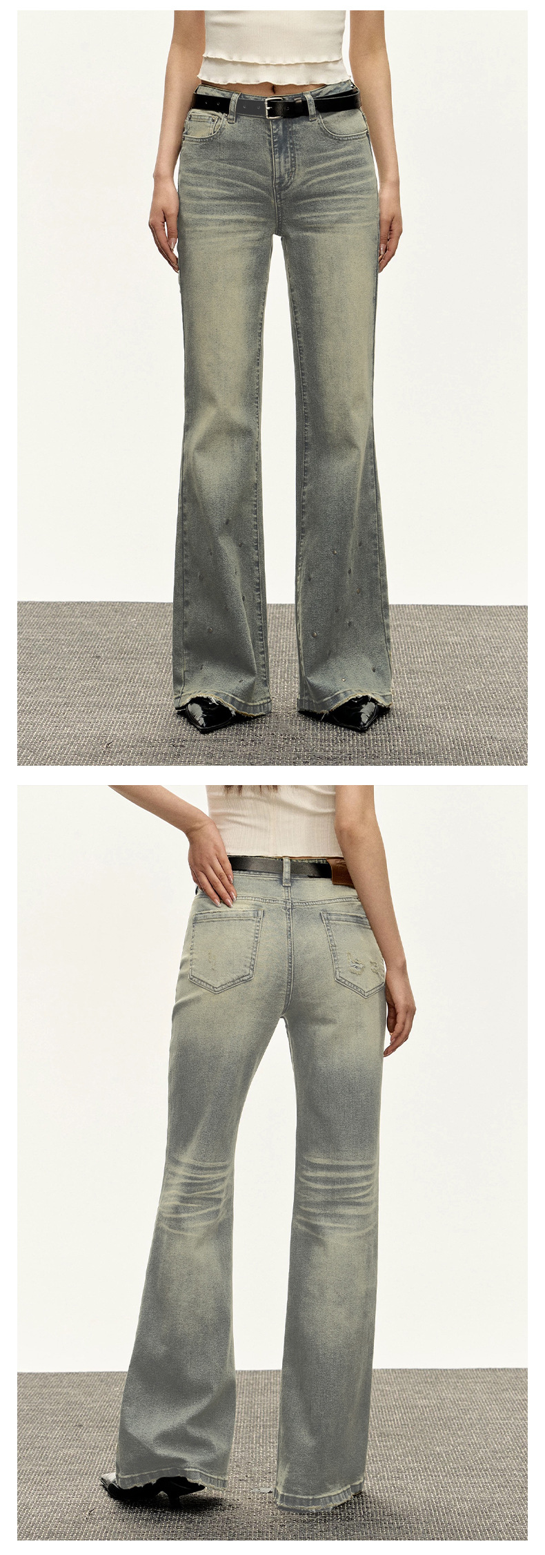 OREETA, 올드 디자인 워시 리벳 청바지, 캐주얼 패션 브랜드 슬림 핏 슬림 핏 스키니 여성용 청바지