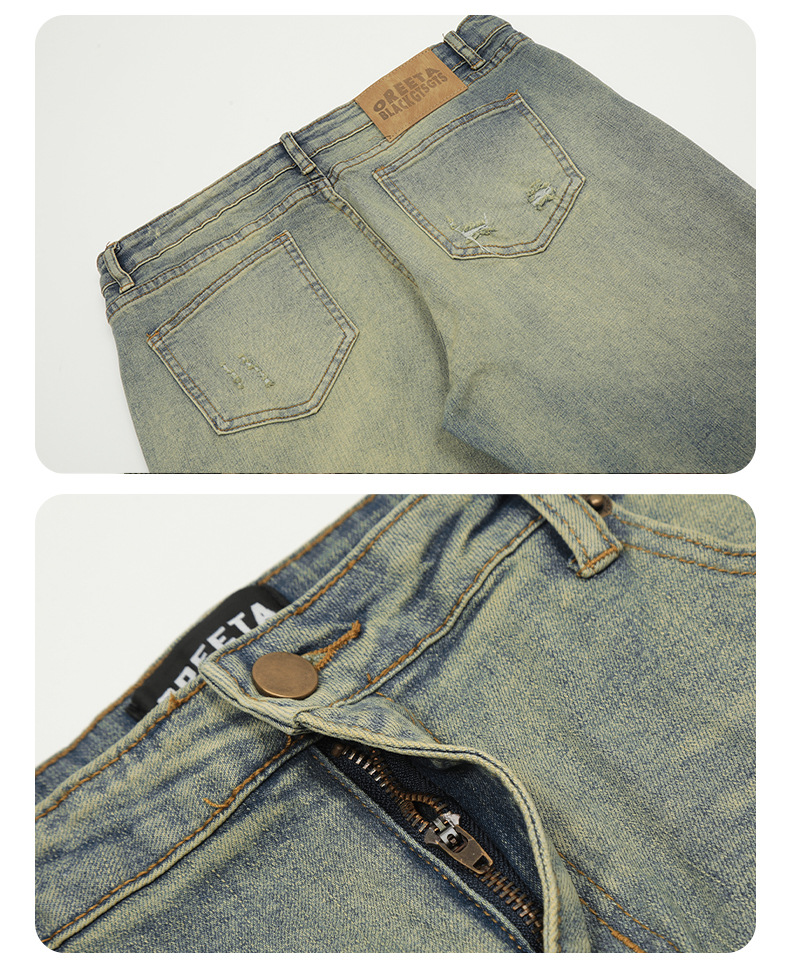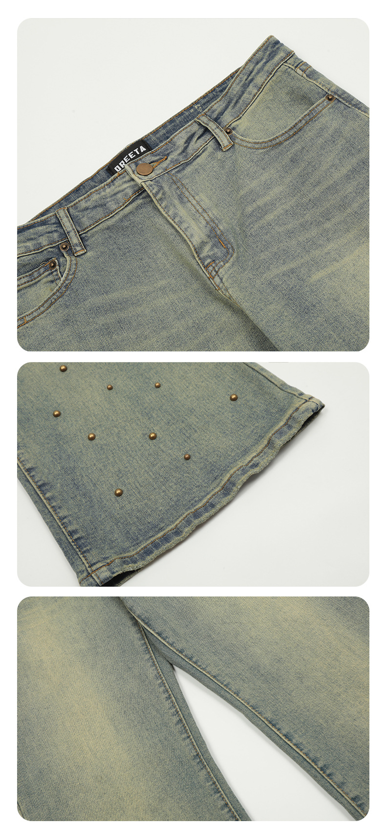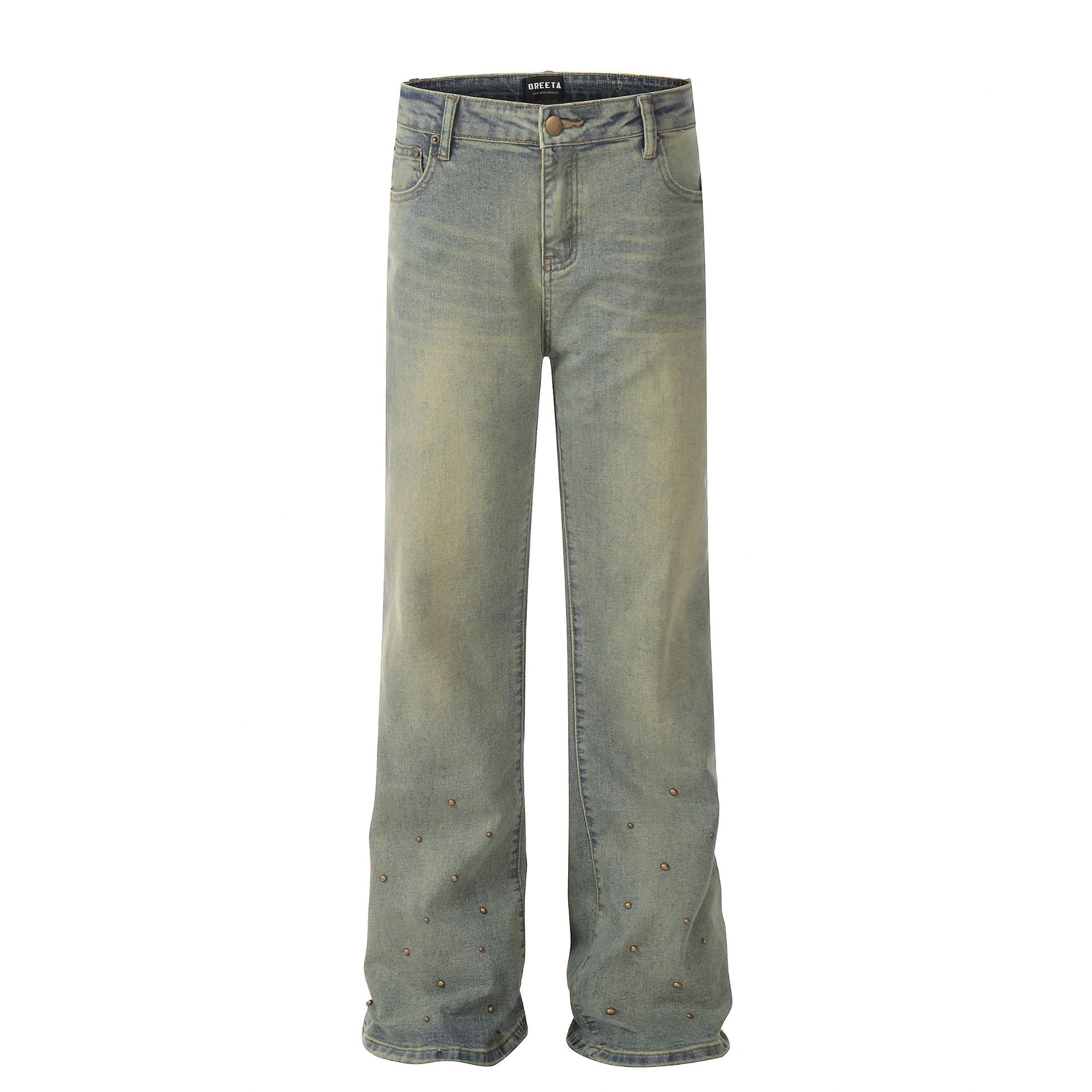 OREETA, 올드 디자인 워시 리벳 청바지, 캐주얼 패션 브랜드 슬림 핏 슬림 핏 스키니 여성용 청바지스토어 가기
