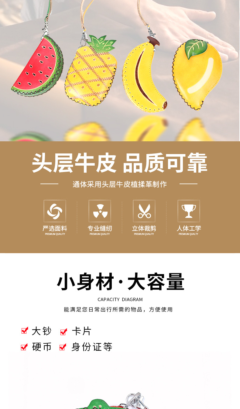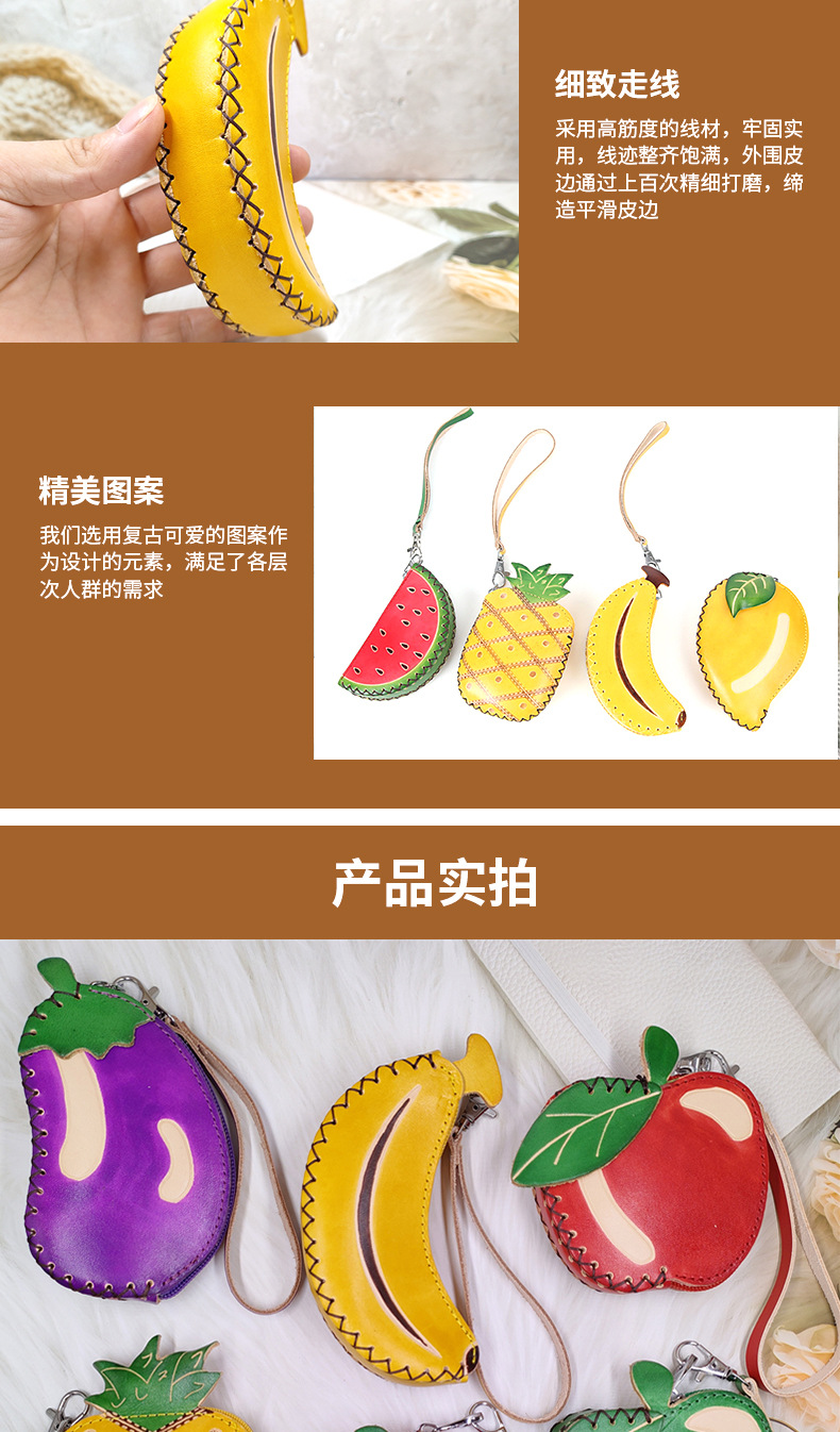 腾牛皮具手工真皮可爱包包仿真水果零钱包挂件钥匙包散硬币小钱包