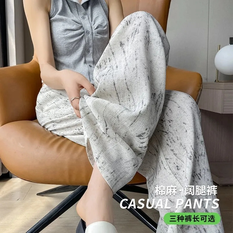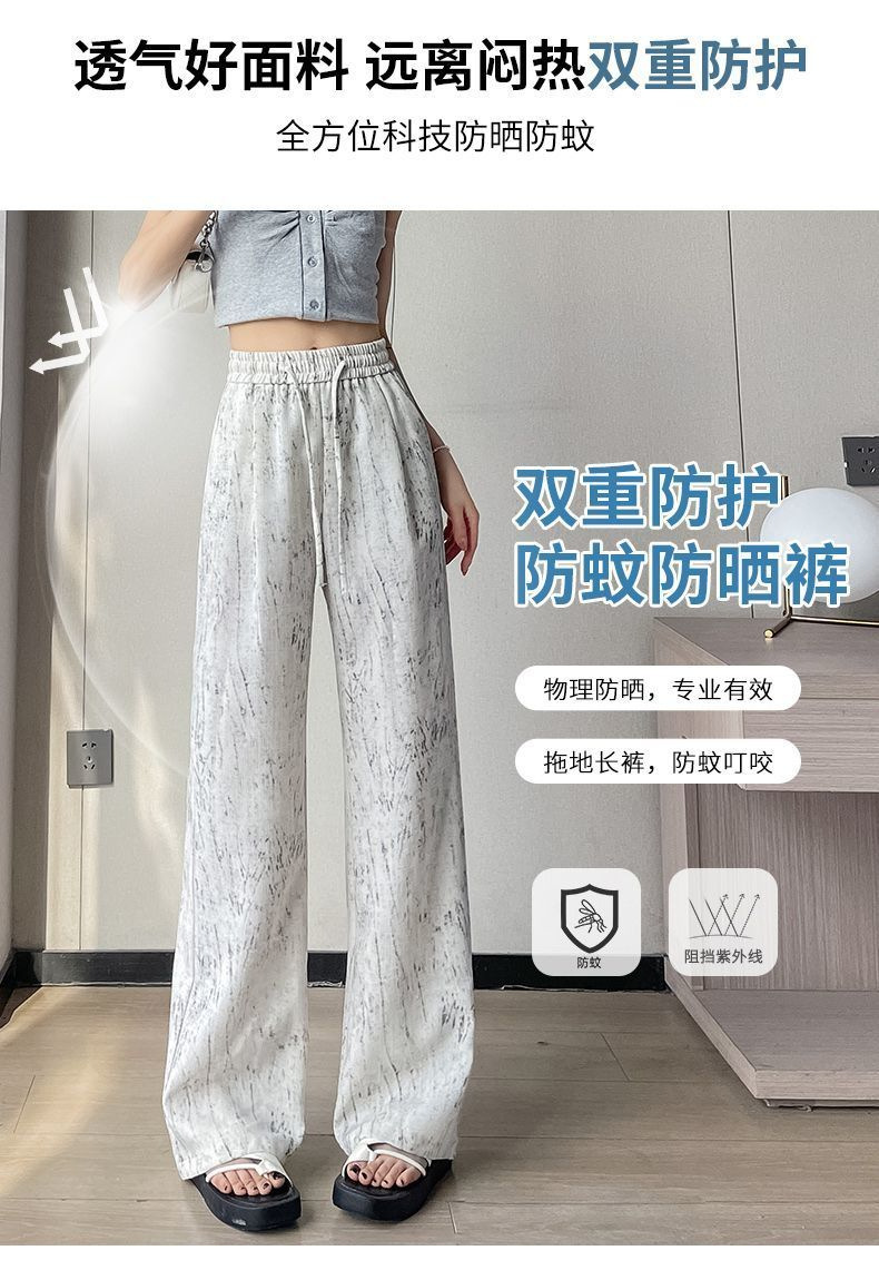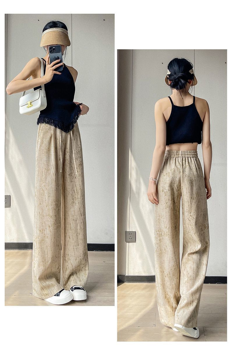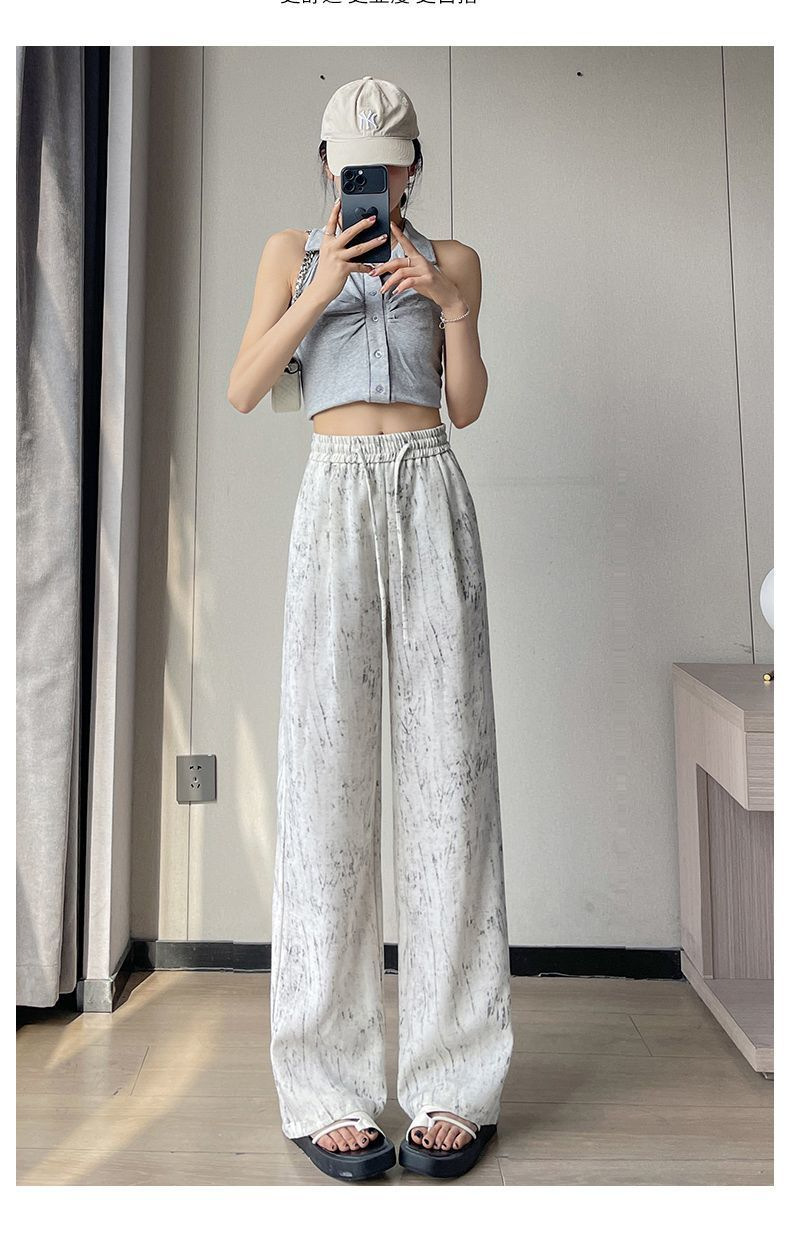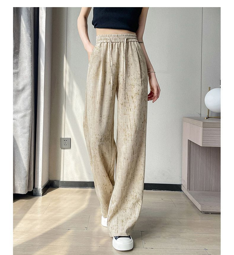 2025 여름 새로운 하이 웨이스트 타이 염색 드레이프 와이드 레그 팬츠 여성 얇은 느슨한 단순 캐주얼 여성 바지 Dropshipping스토어 가기