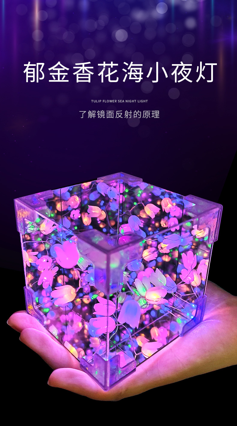 꽃바다 야간등 과학 DIY 튤립 과학 실험 입체 거울 교육용 장난감 DIY 재료스토어 가기