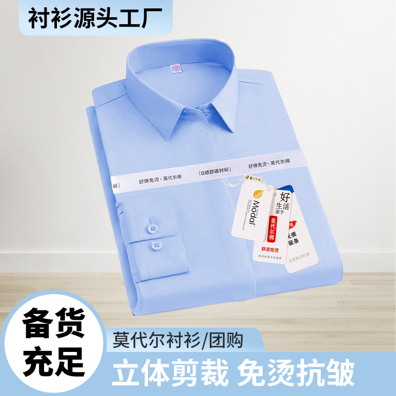 새로운 스타일 여성용 셔츠 모달 탄성 비 주름 방지 비즈니스 긴팔 셔츠 봄과 여름 하이 엔드 우아한 여성 셔츠