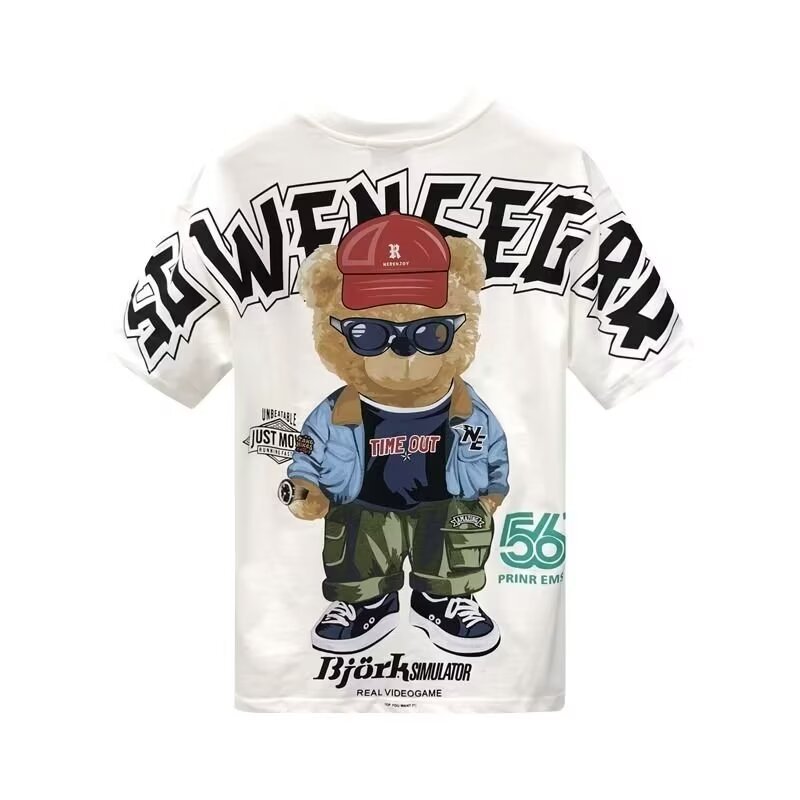 재미있는 만화 곰 반소매 코튼 티셔츠 남자 2024 여름 새로운 하이 퀄리티 패션 브랜드 어깨 반소매 탑 T스토어 가기