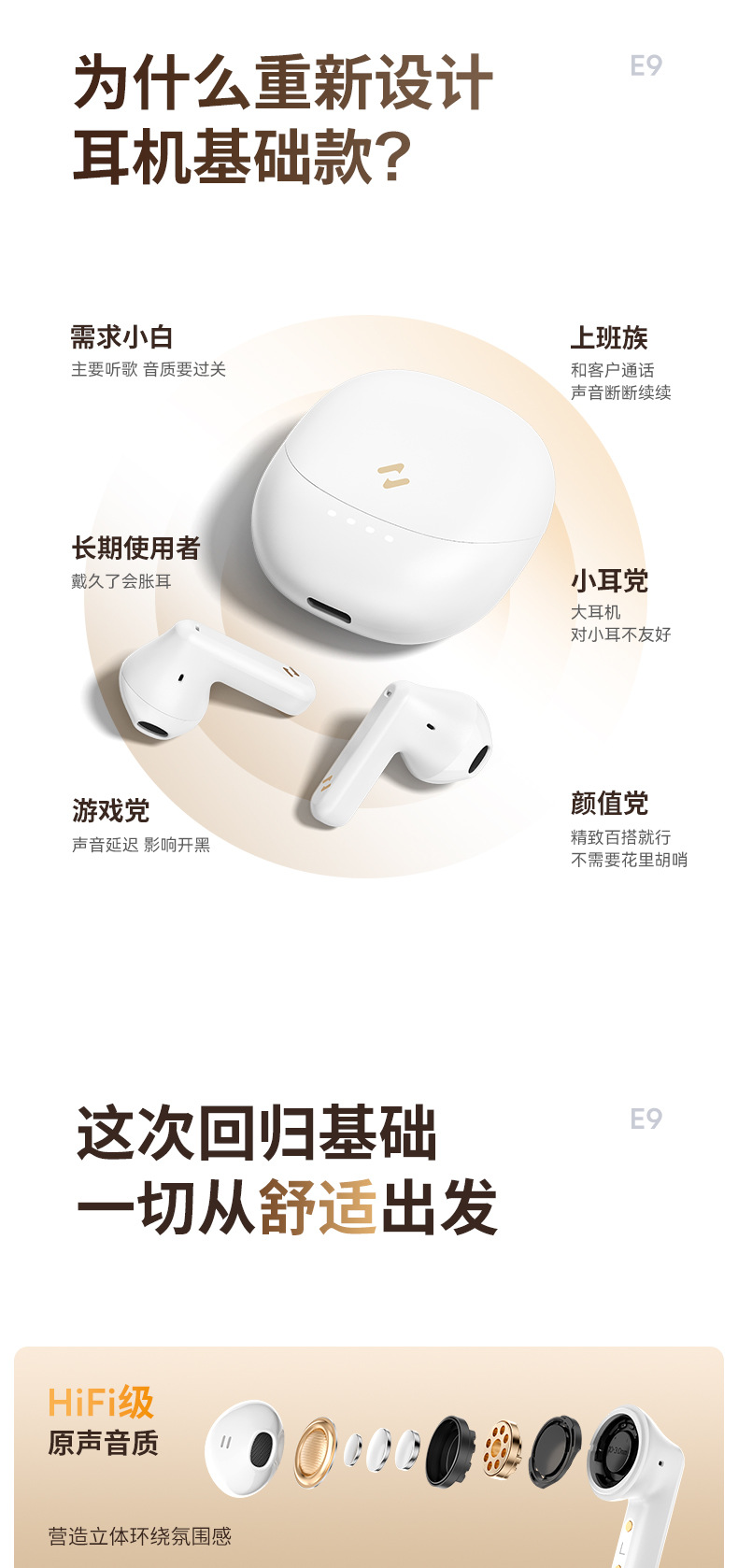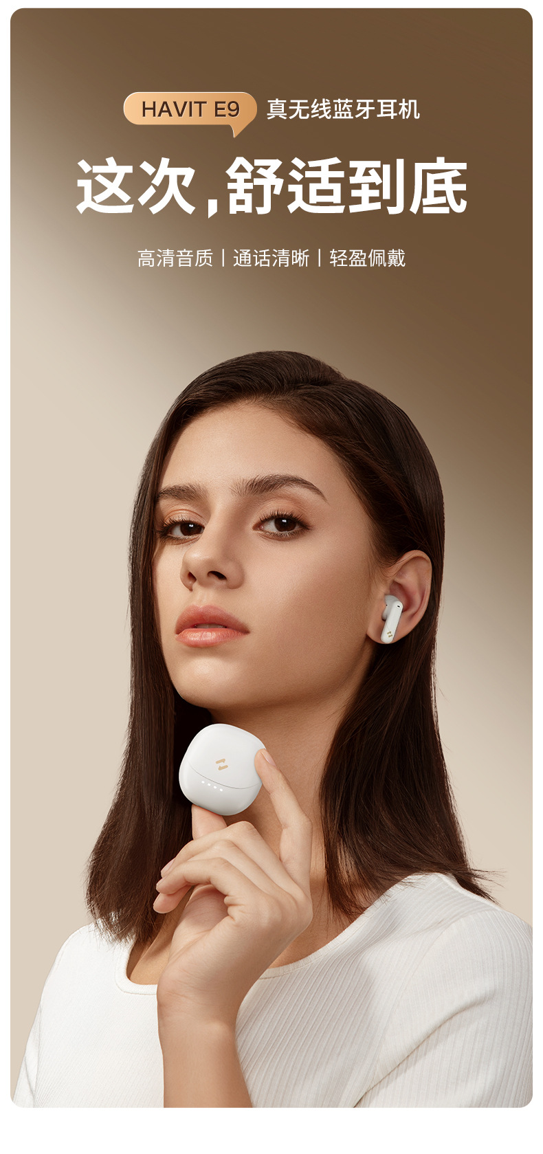 휴이트 새로운 E9 블루투스 헤드셋 세미 인이어 미니 긴 내구성 ENC 소음 감소 무선 블루투스 헤드셋스토어 가기