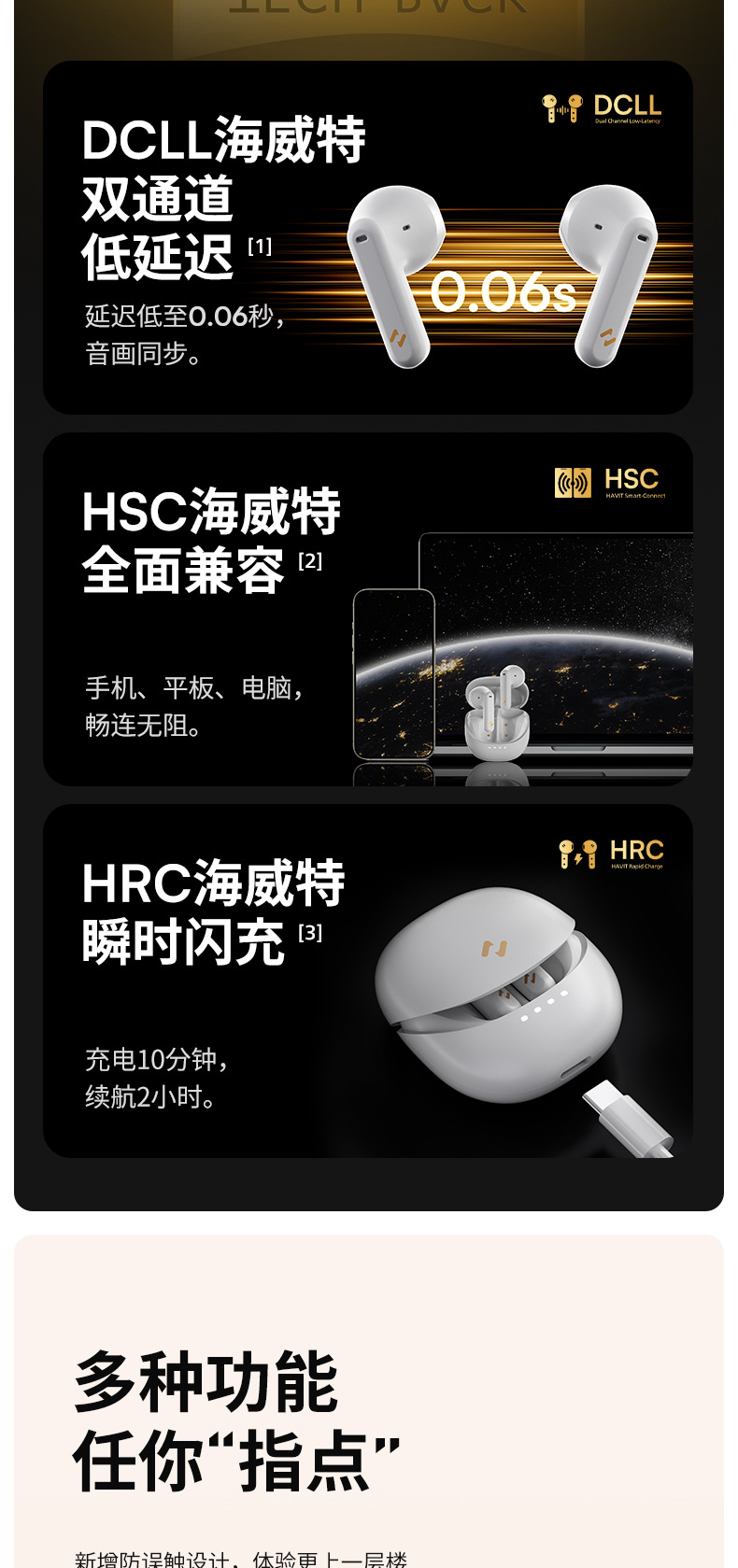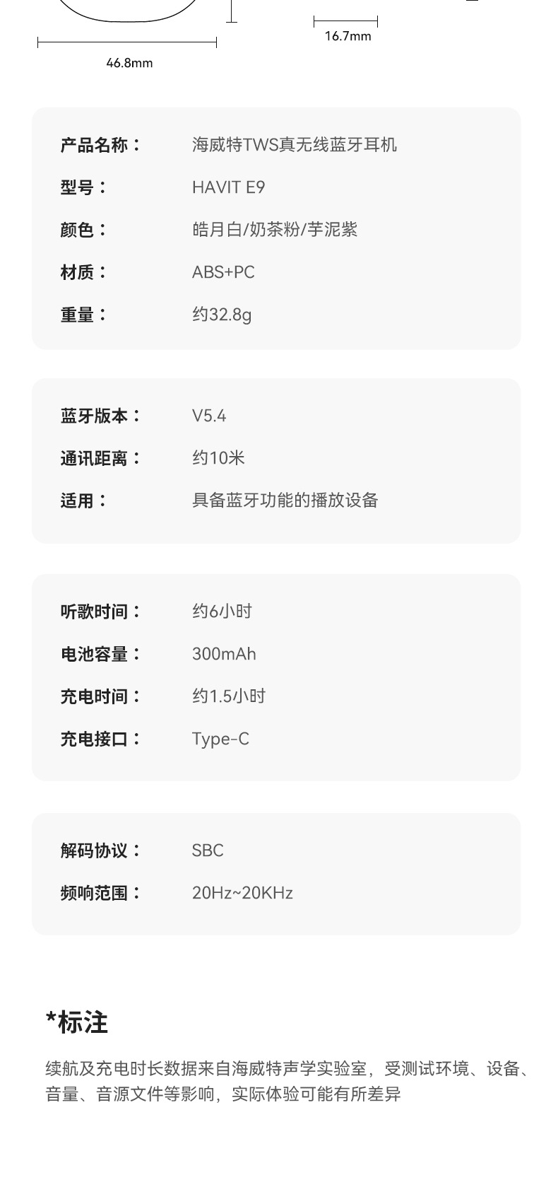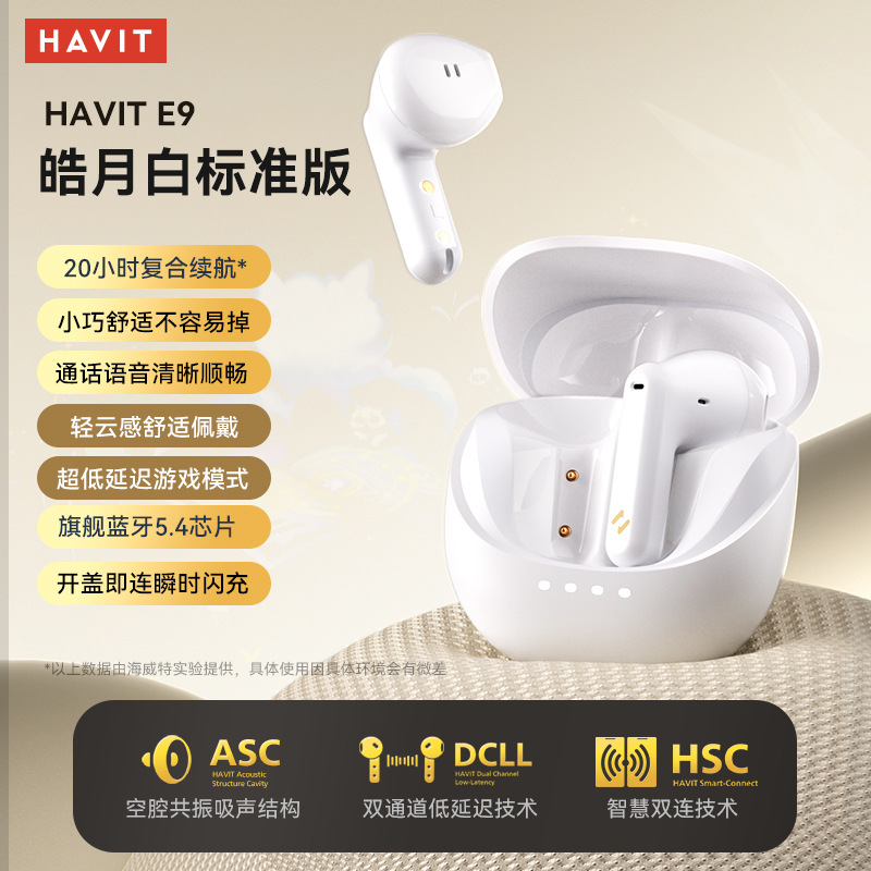 휴이트 새로운 E9 블루투스 헤드셋 세미 인이어 미니 긴 내구성 ENC 소음 감소 무선 블루투스 헤드셋