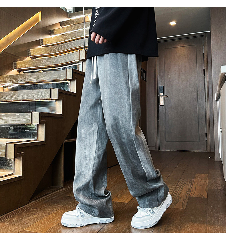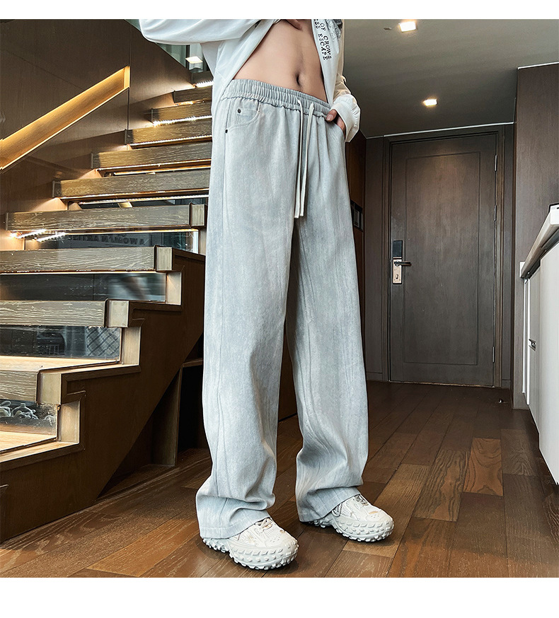 봄과 가을 트렌디 한 홍콩 스타일 남성 레트로 퓨어 코튼 청바지 뚱뚱한 남자 플러스 사이즈 느슨한 스트레이트 바지스토어 가기