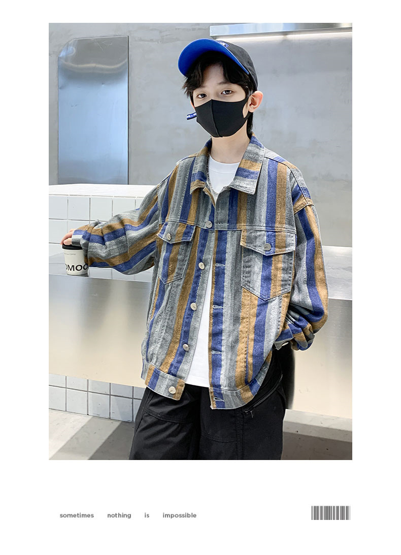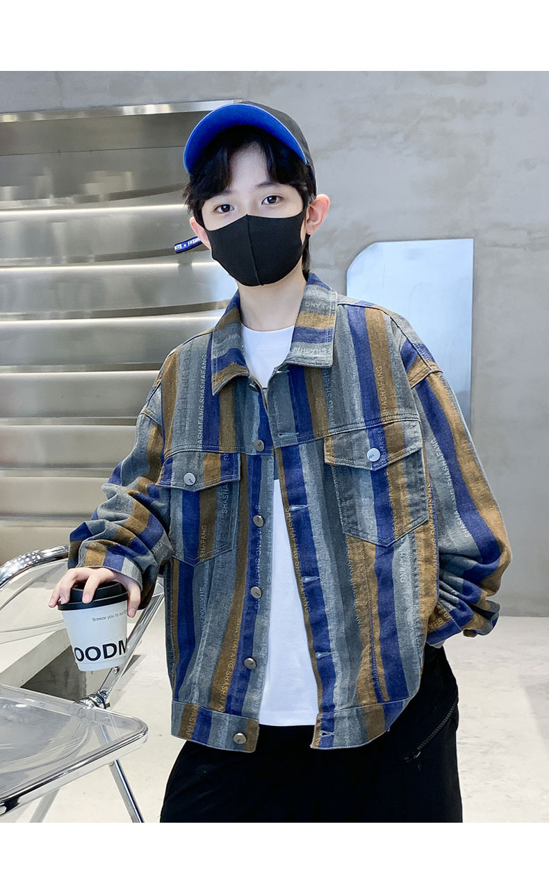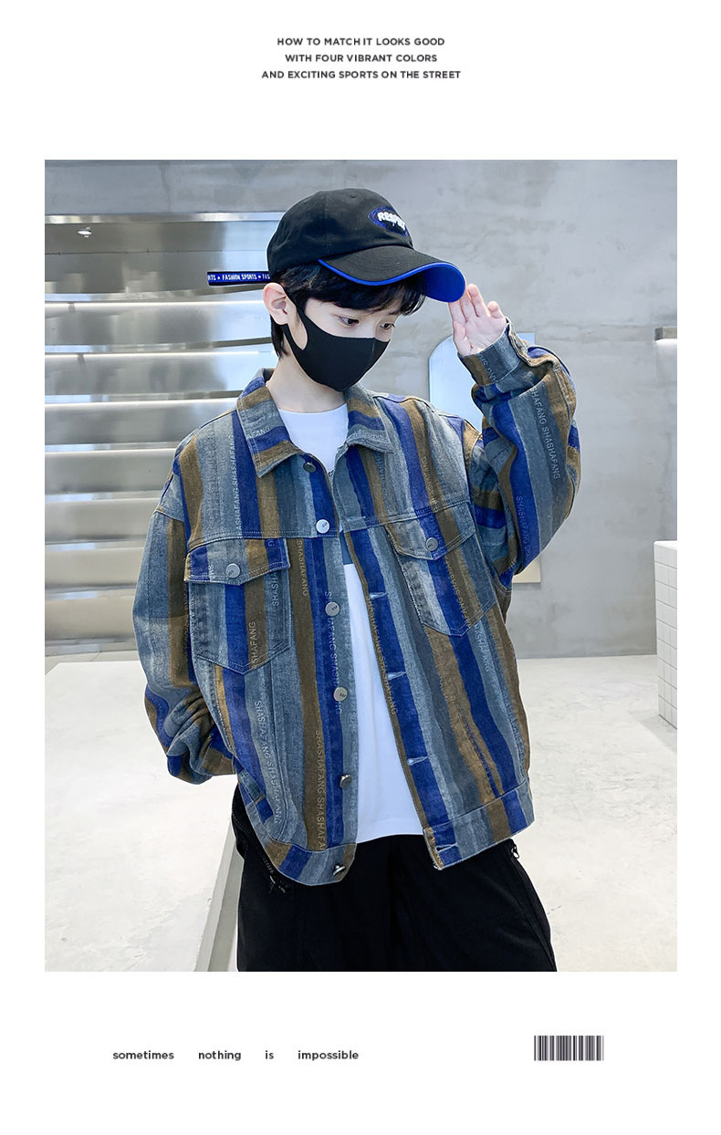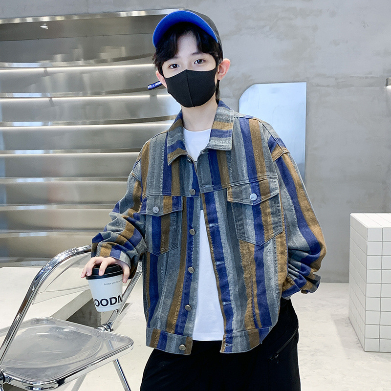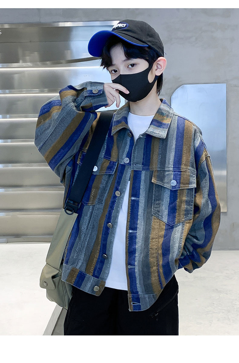 소년의 가을 줄무늬 데님 코트 2024 새로운 큰 어린이 가을 어린이 봄 가을 소년 코트 아동복스토어 가기