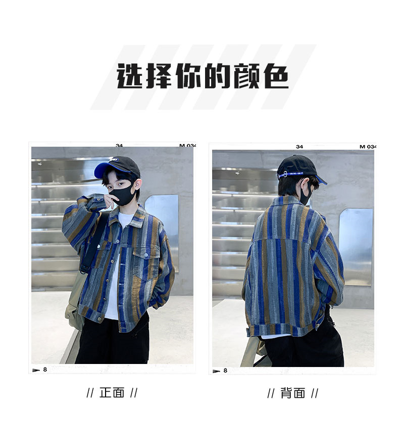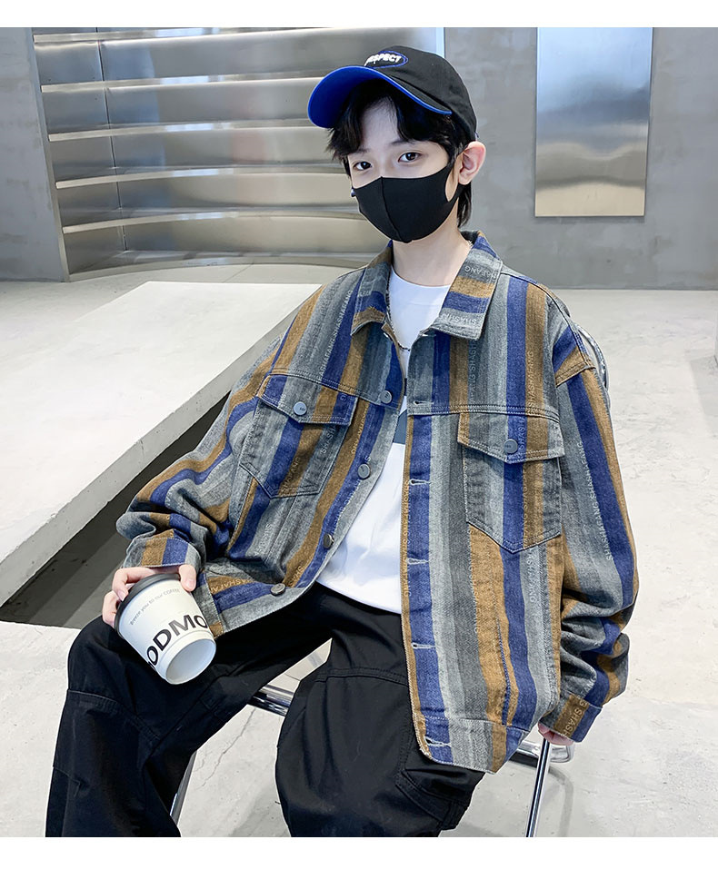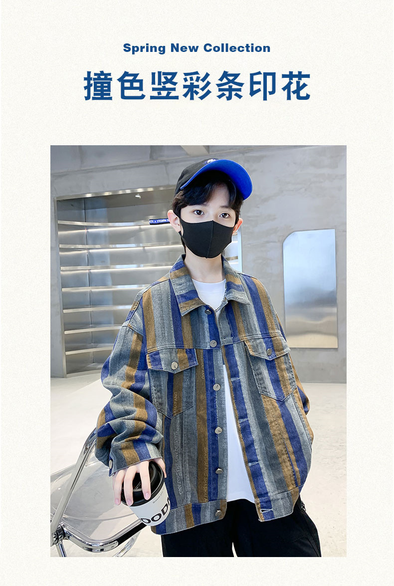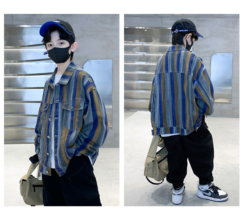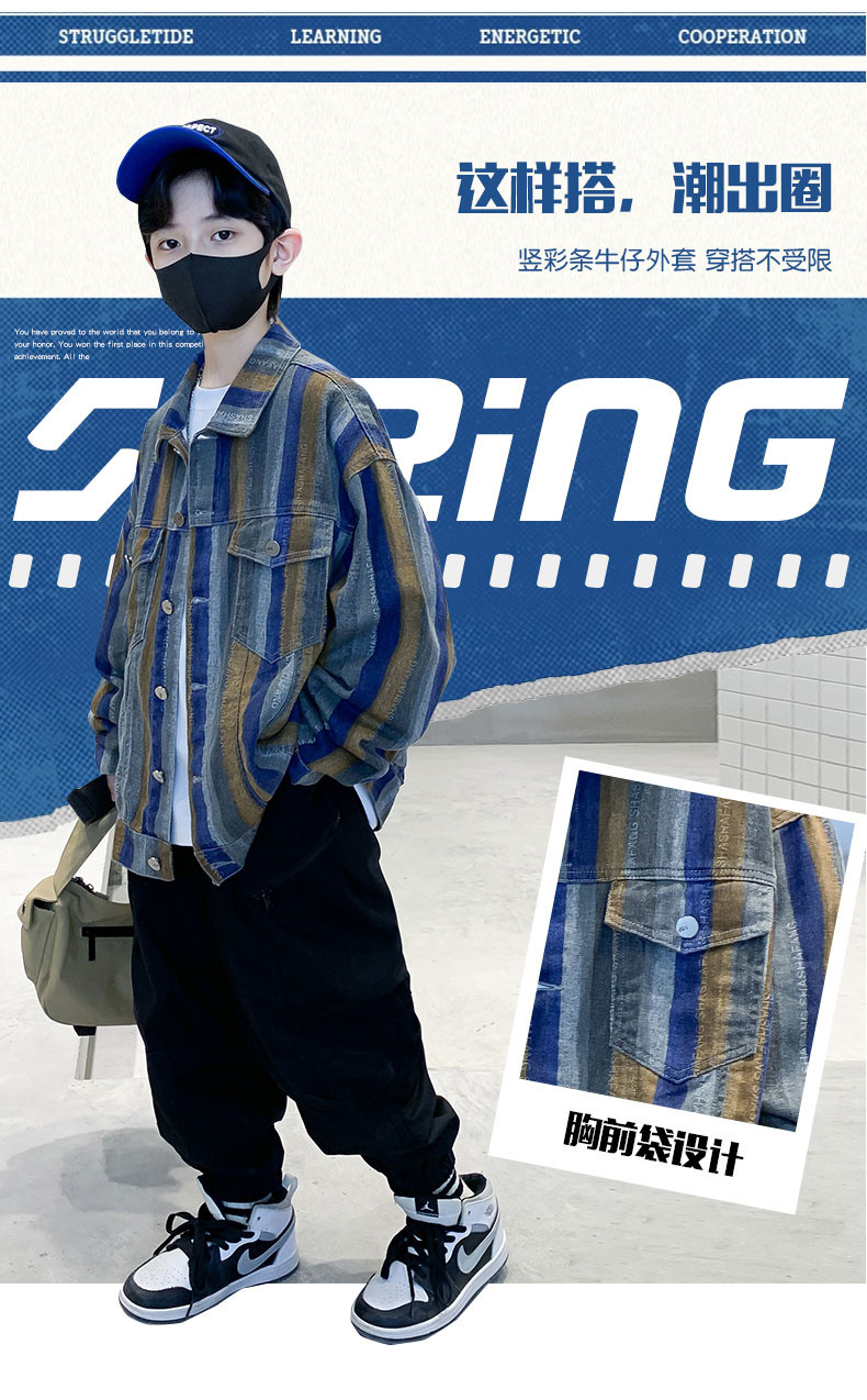 소년의 가을 줄무늬 데님 코트 2024 새로운 큰 어린이 가을 어린이 봄 가을 소년 코트 아동복스토어 가기