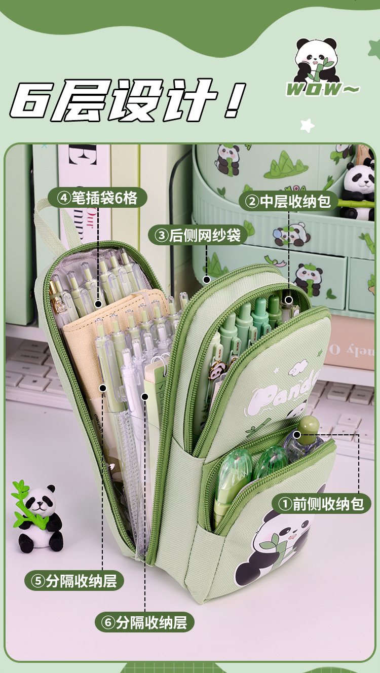 3 층 높은 가치의 작은 책가방 팬더 연필 케이스 다기능 대용량 더러운 저항 귀여운 우유 전화 학생 문구 케이스스토어 가기