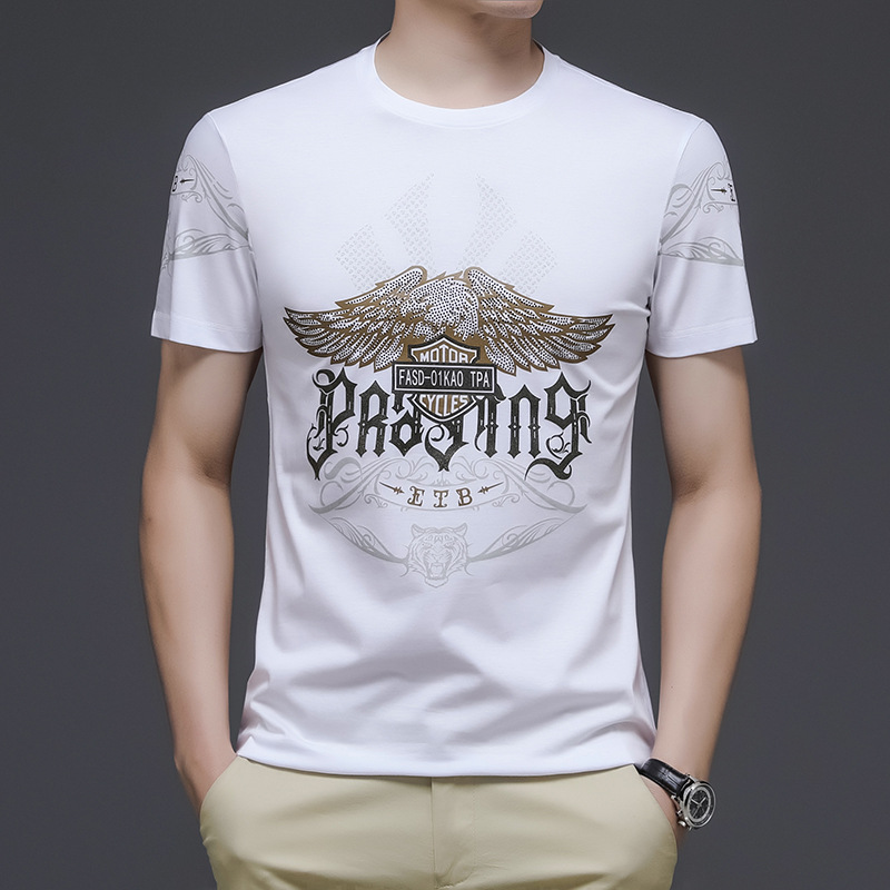 라운드 넥 캐주얼 남성 2023 여름 새로운 남성 반팔 티셔츠 단색 탑 패션 프린트 반팔 남성 의류스토어 가기