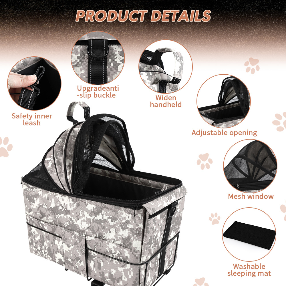 국경을 넘는 새로운 스타일의 애완동물 자전거 뒷좌석 가방, 야외 차량용 휴대용 숄더백, 휴대 가능하고 탈부착 가능한 애완견 가방