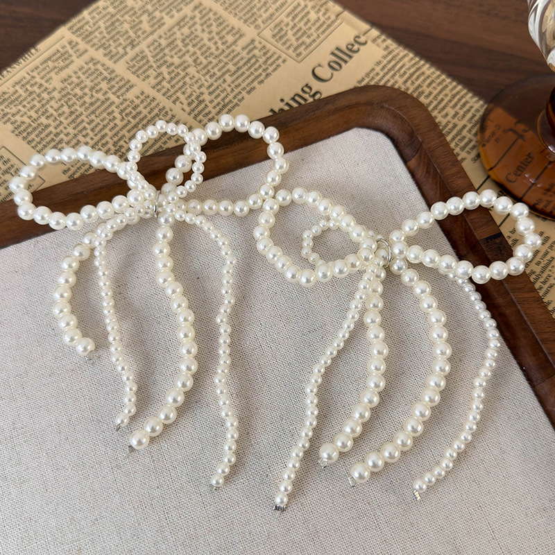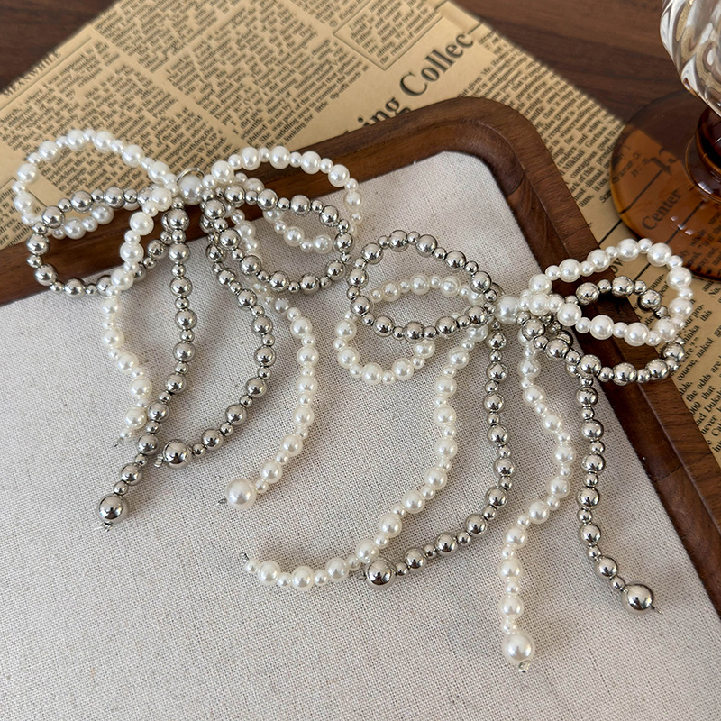 한국식 새 실버 그레이 비즈 진주 리본 장식 신발 버클 2팩, 작은 향기로운 스타일 인터넷 연예인 같은 신발 끈 버클
