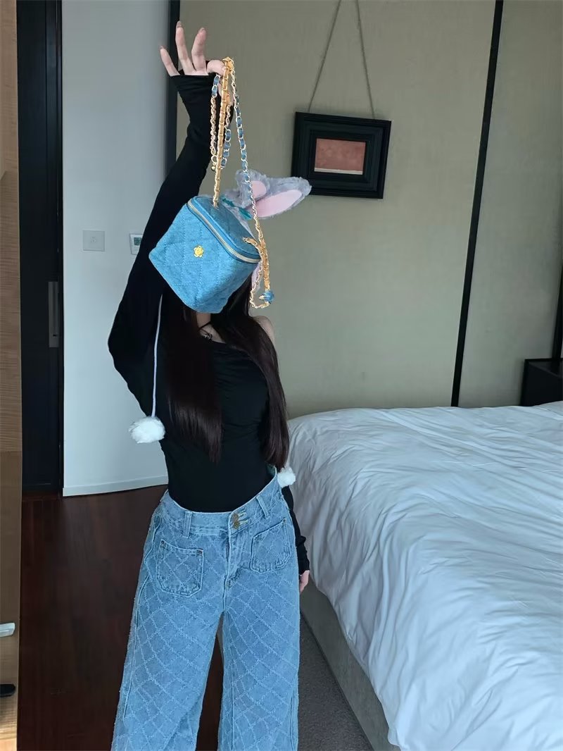 플러스 사이즈 높은 허리 청바지 여성 패션 브랜드 2024 새로운 일본 격자 무늬 바지 청소년 인기 여름 얇은 바지스토어 가기