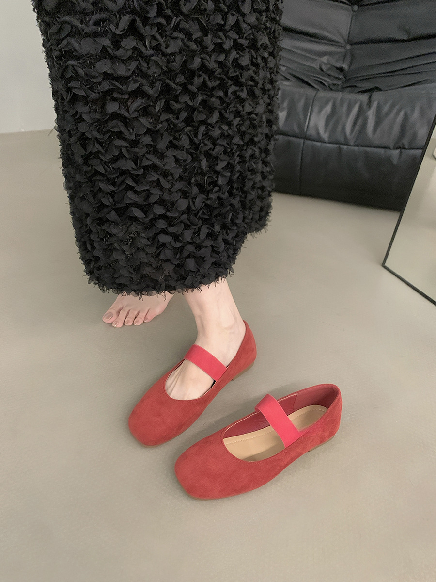 플랫 레트로 작은 빨간 싱글 신발 요정 신발 2024 스커트 메리 제인 신발을 가진 새로운 여름 발레 신발스토어 가기