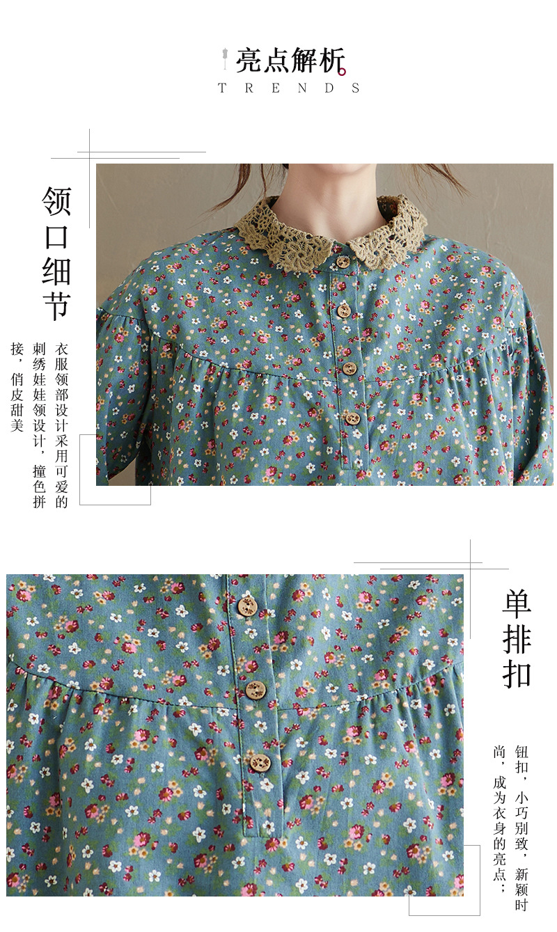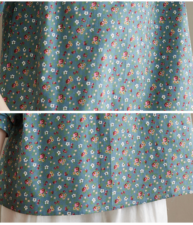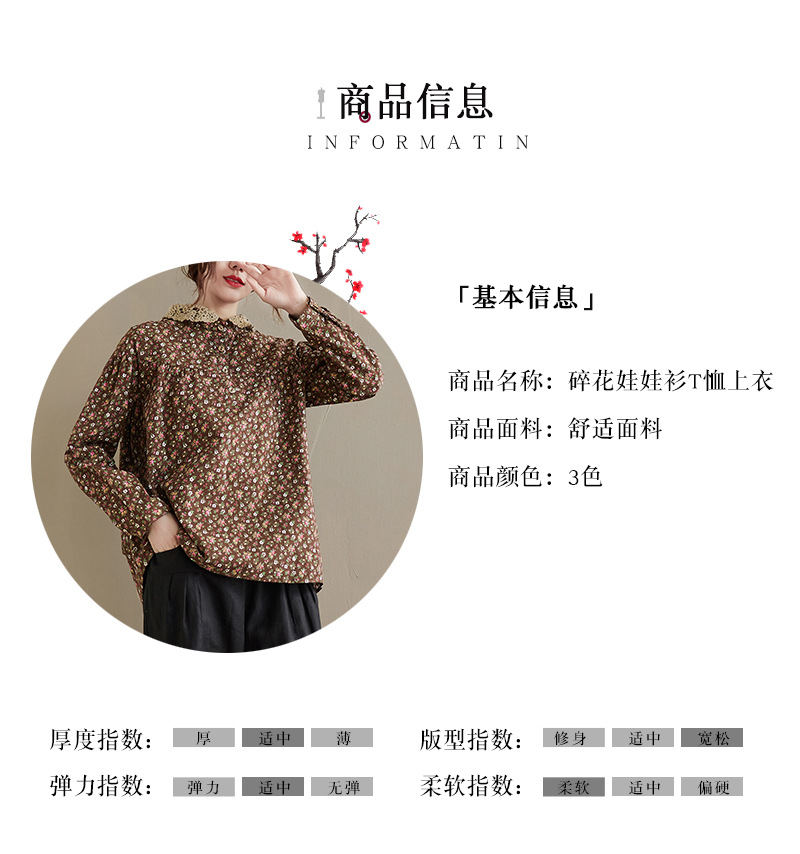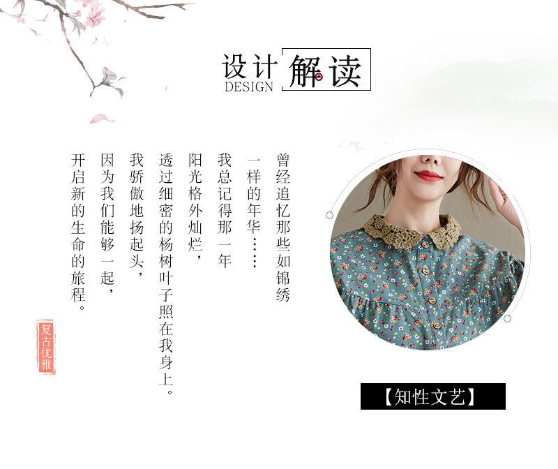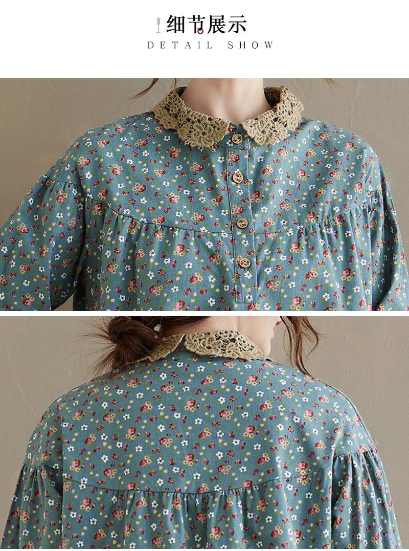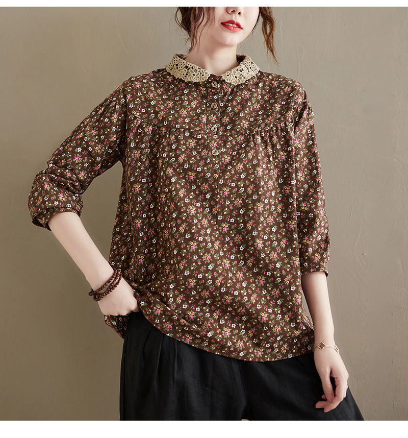 2025년 가을 신상 면마 혼방 예술적 프린트 레이스 칼라 긴팔 루즈핏 셔츠 여성용스토어 가기