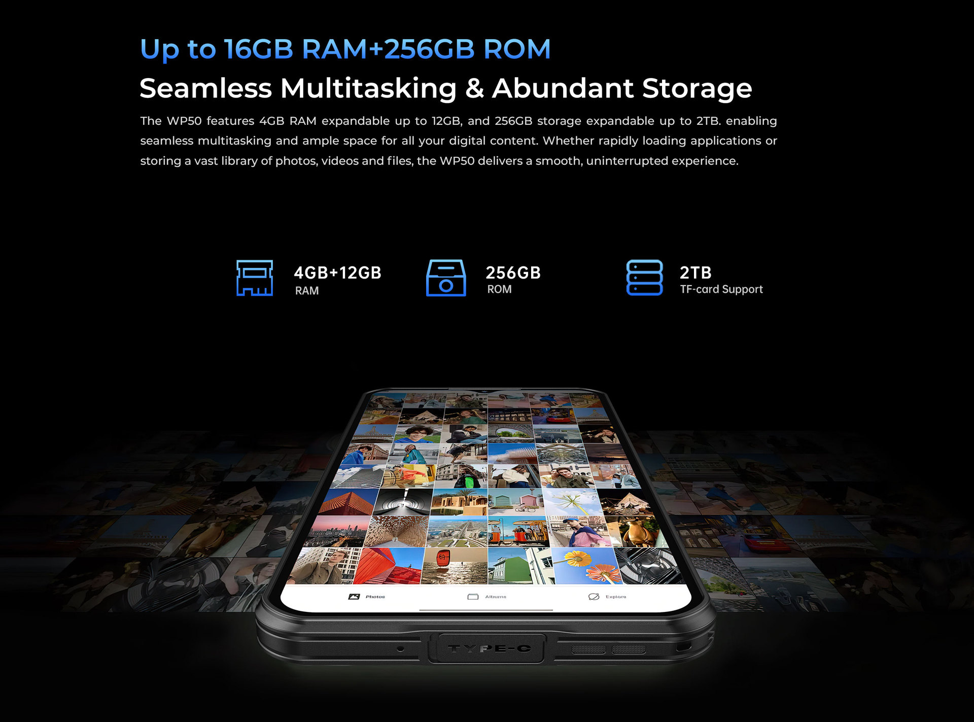 Ouqi WP50 3 증거 5G 휴대 전화 초박형 바디 6500mAh 배터리 스마트 폰 방수 안티-가을 4G 256G스토어 가기