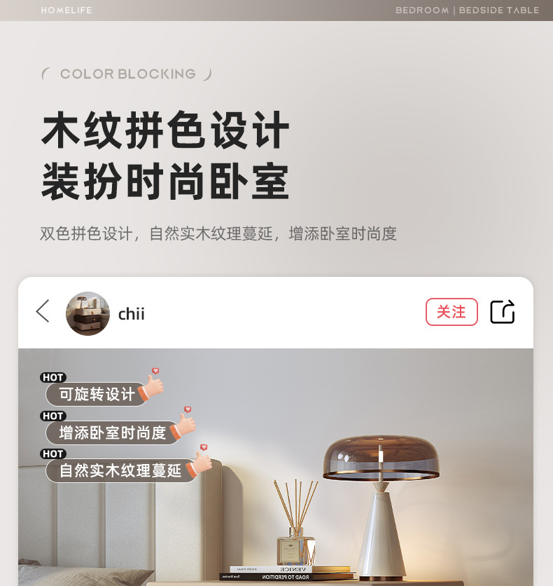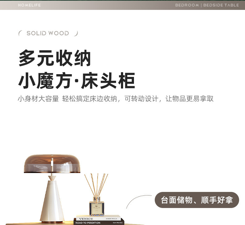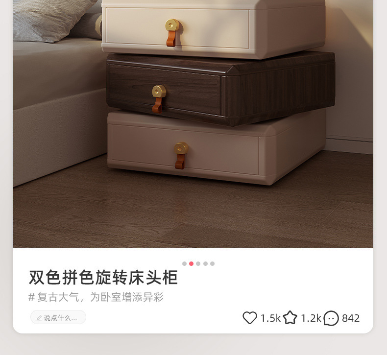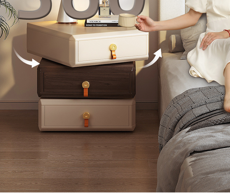창조적 인 회전 침대 테이블 현대 간단한 가벼운 고급 고급 고급 단단한 나무 침대 옆 테이블 2024 새로운 침실 보관 캐비닛