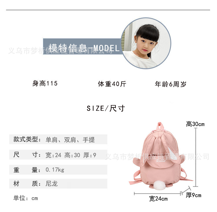 Etsy 맞춤형 자수 로고 어린이 숄더백 초등학교 만화 귀여운 경량 토끼 책가방