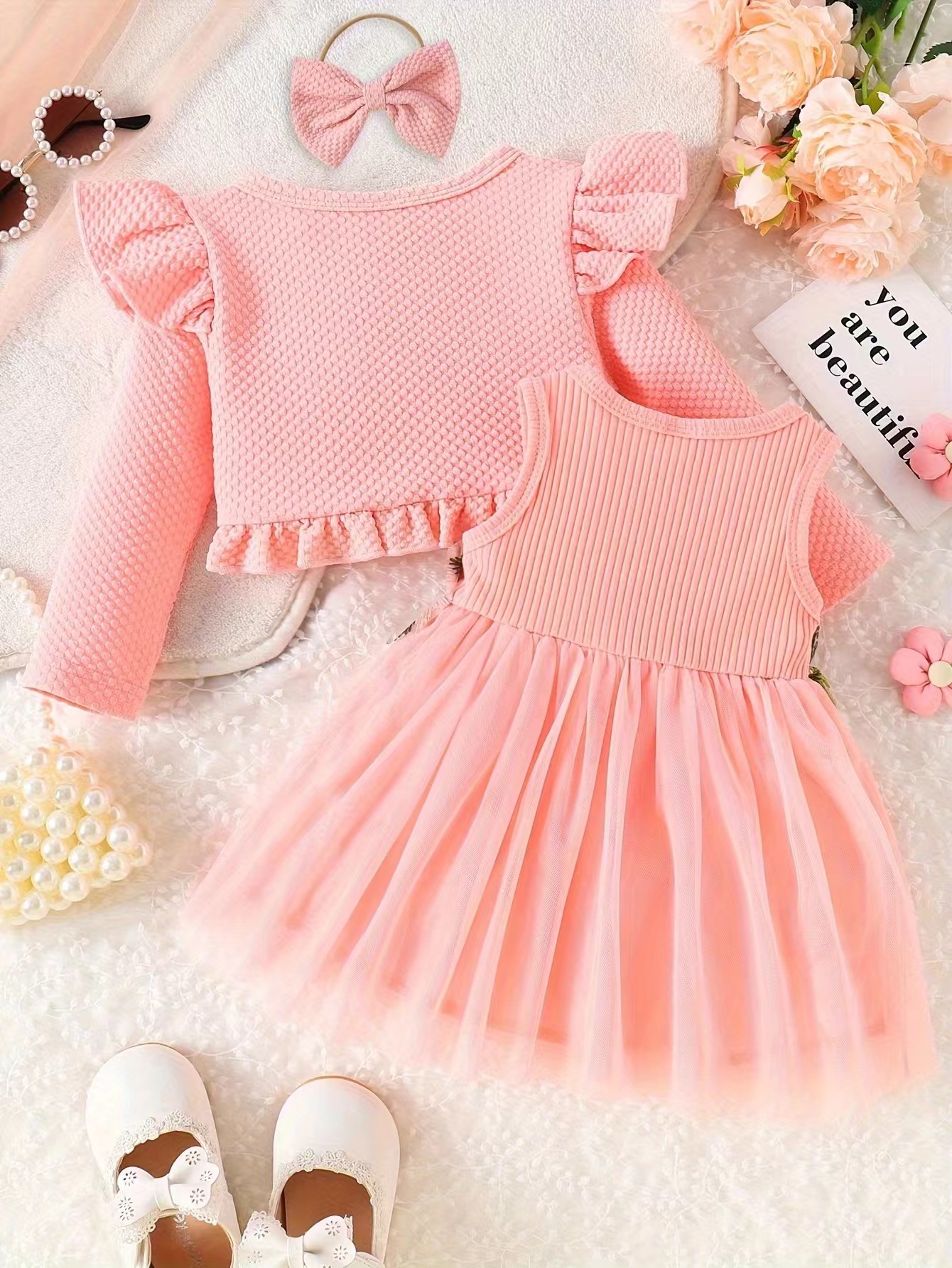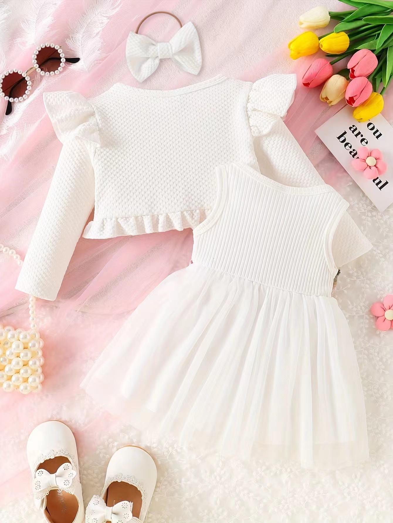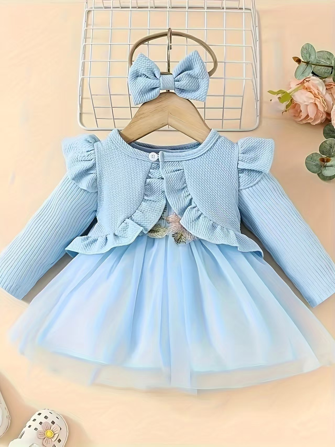 국경 INS 아기 소녀 봄 가을 조끼 허리 꽃 디자인 원피스 긴 소매 작은 코트