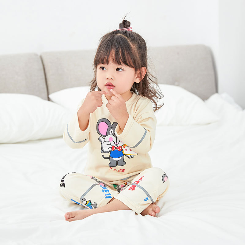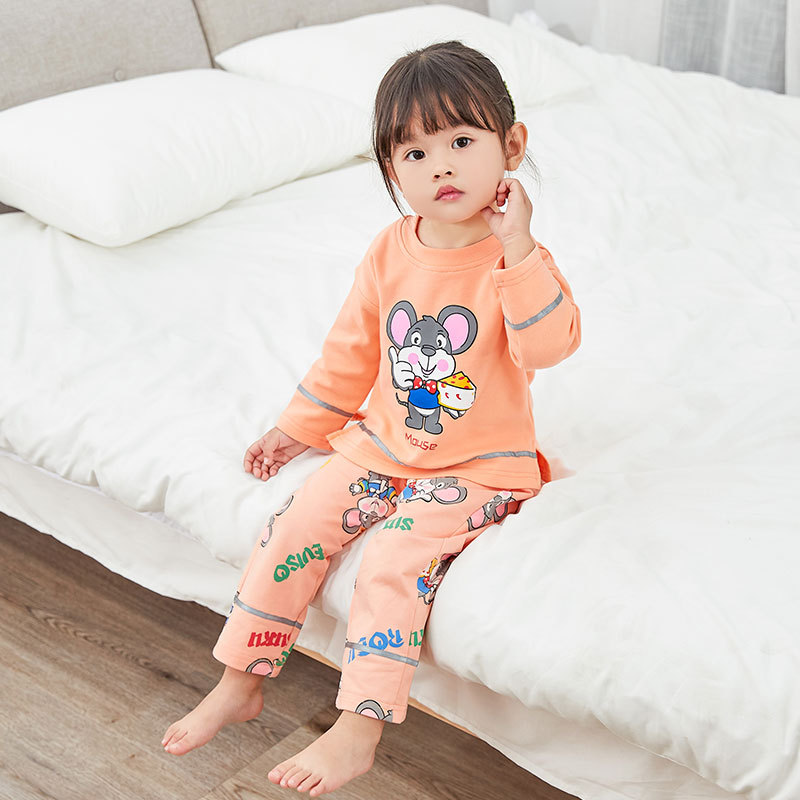 새로운 어린이 가정복 가을 얇은 잠옷 세트 귀여운 아기 트렌디한 만화 따뜻한 옷 유아 및 어린이용스토어 가기