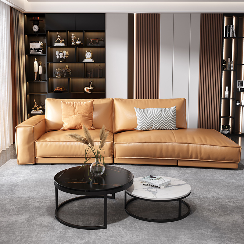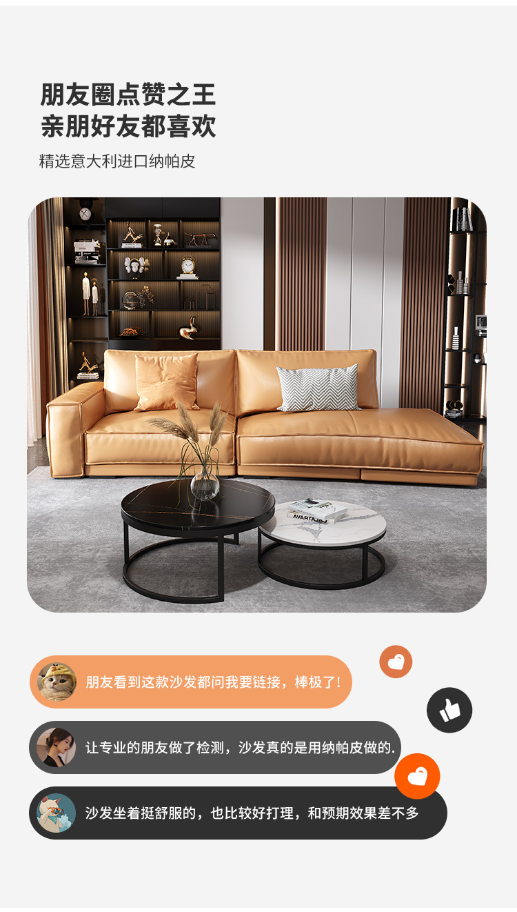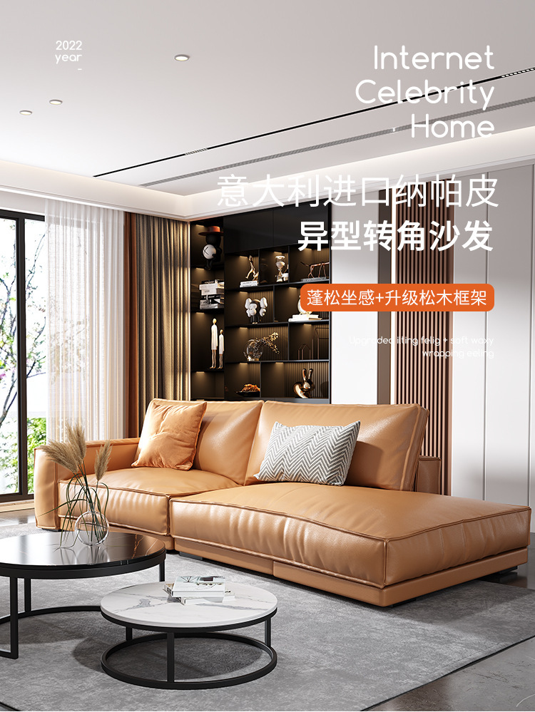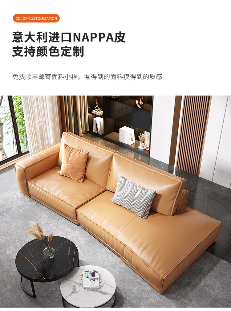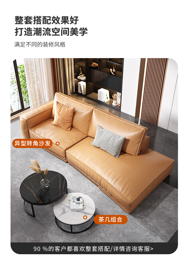 이탈리아 스타일의 가벼운 럭셔리 소파 현대 간단한 거실 스트레이트 로우 콤비네이션 특수 모양의 대형 아파트 부다페스트 가죽 소프트 소파스토어 가기