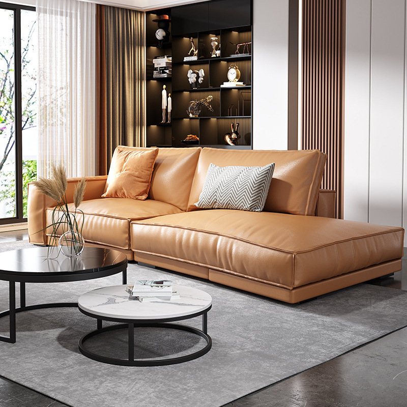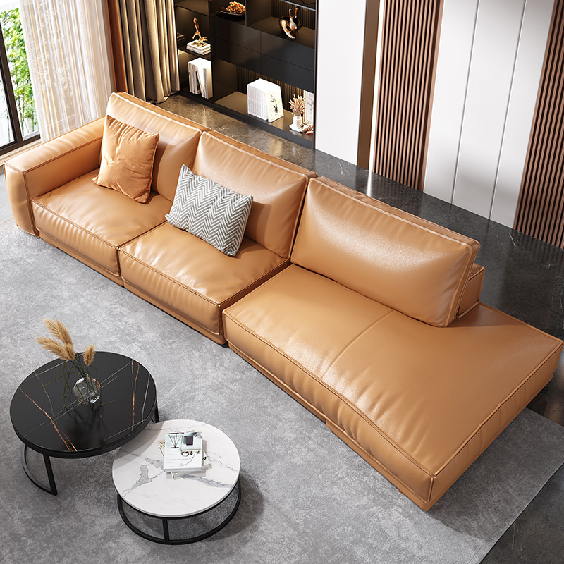 이탈리아 스타일의 가벼운 럭셔리 소파 현대 간단한 거실 스트레이트 로우 콤비네이션 특수 모양의 대형 아파트 부다페스트 가죽 소프트 소파