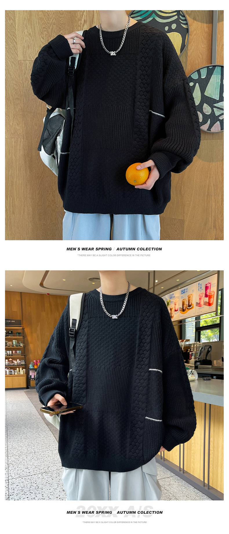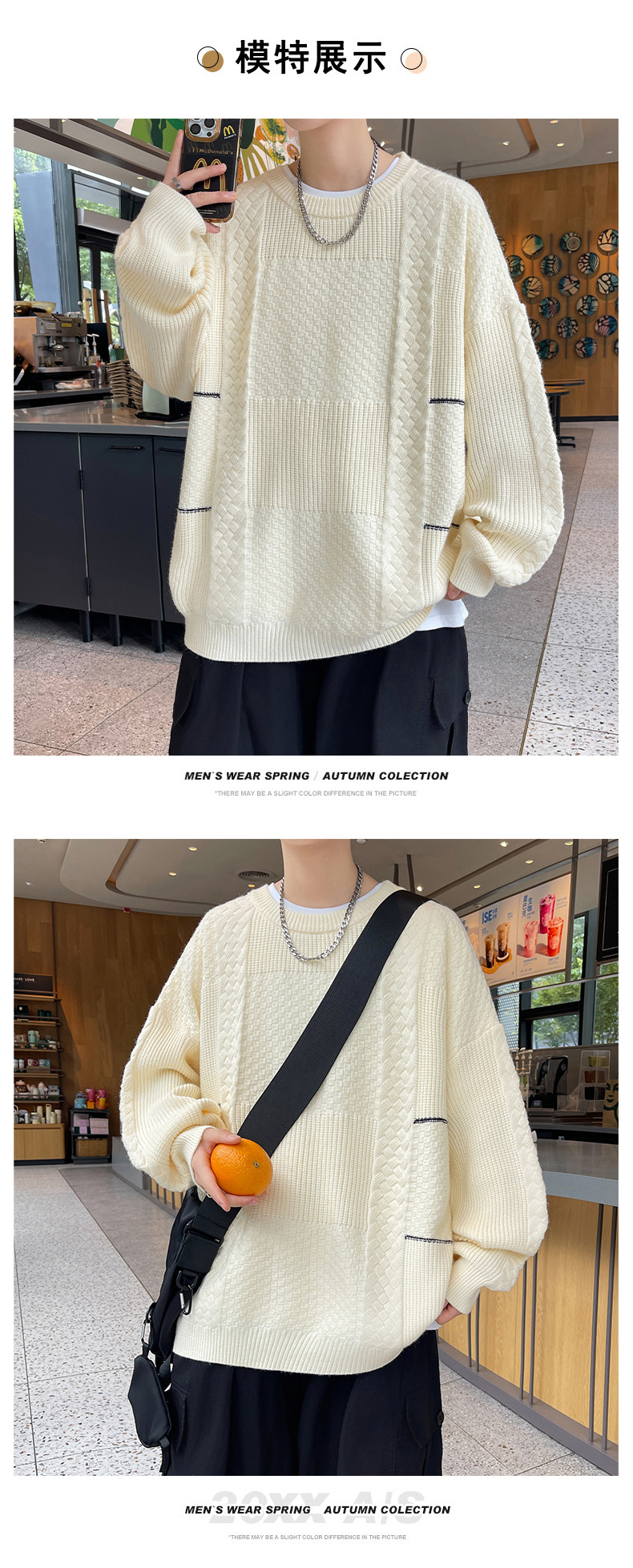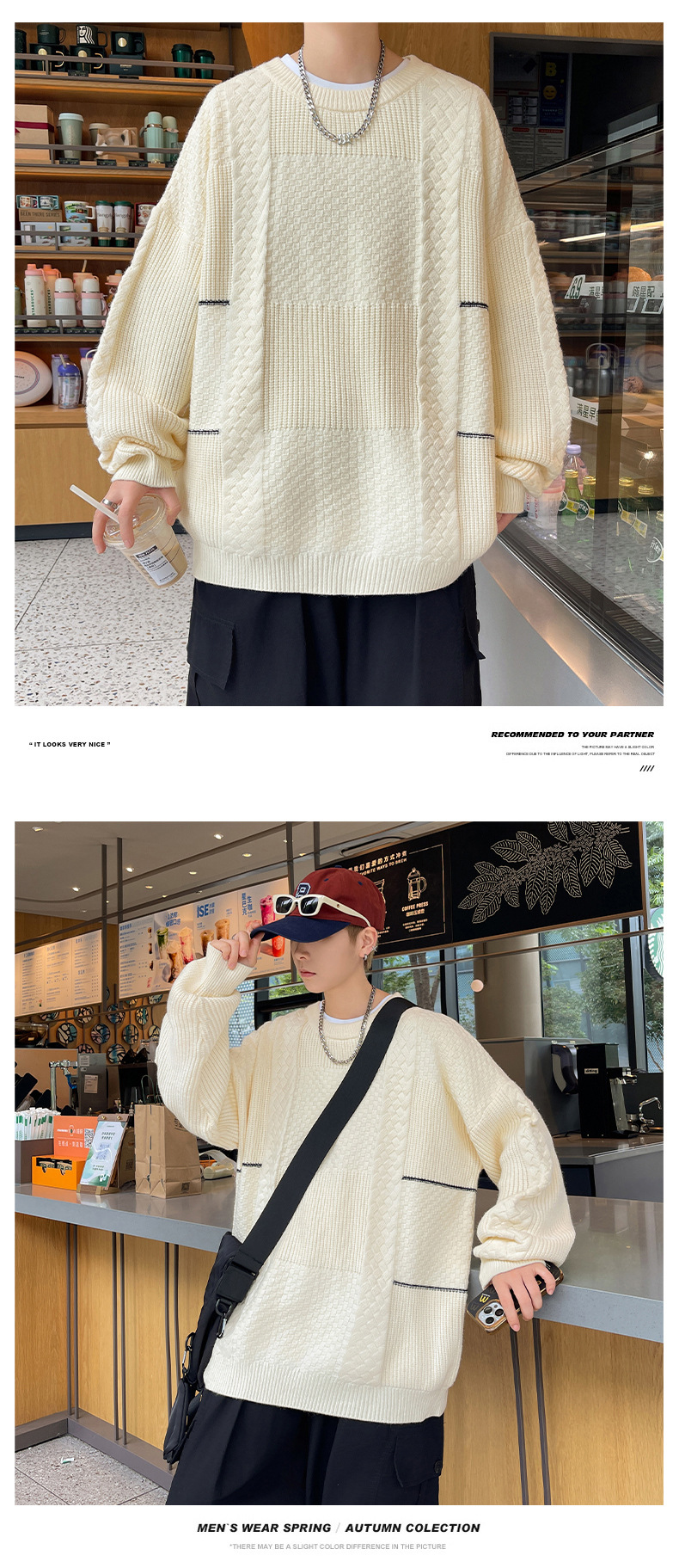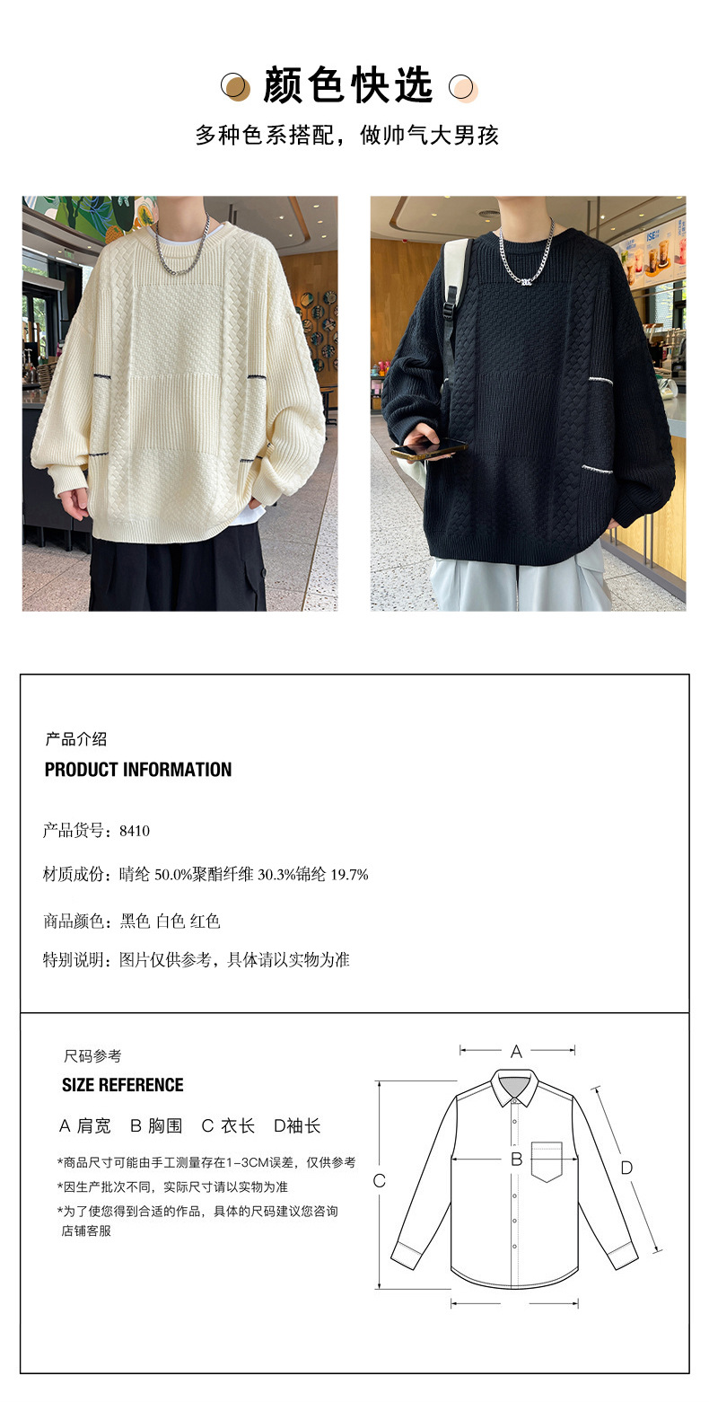 홍콩 스타일 스트라이프 라운드넥 스웨터 남성용 루즈핏 캐주얼 트렌디 두꺼운 니트 스웨터 홍콩 스타일 스트라이프 8410