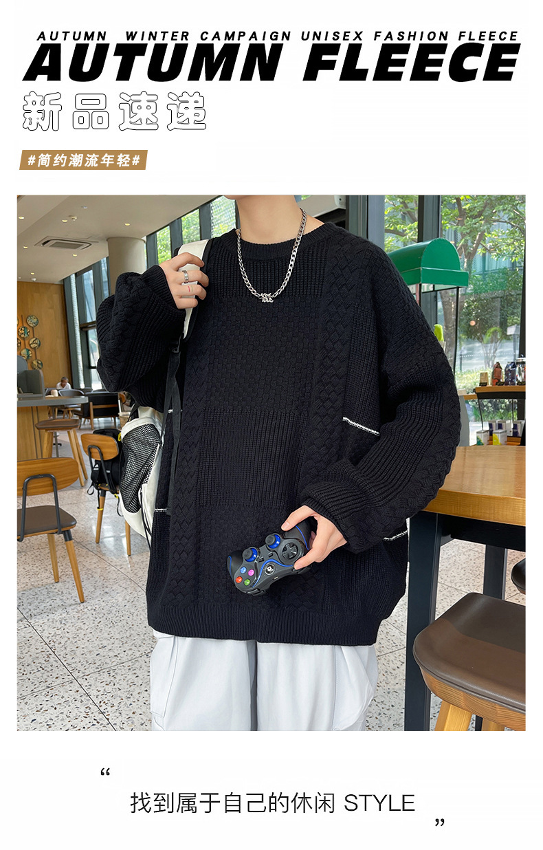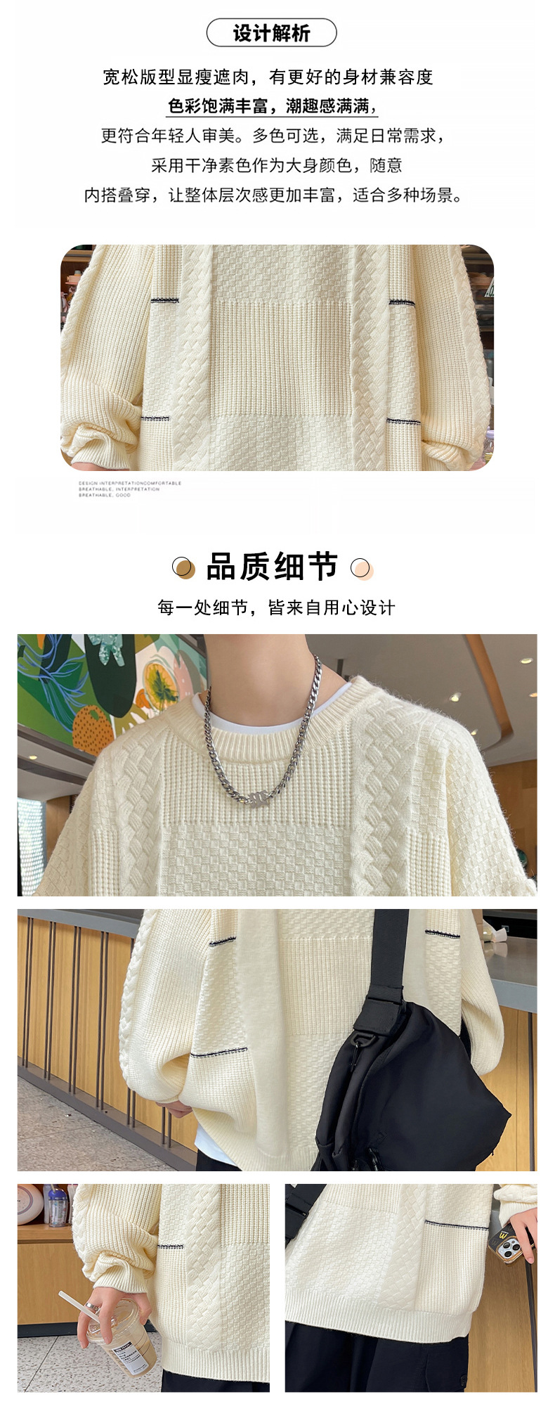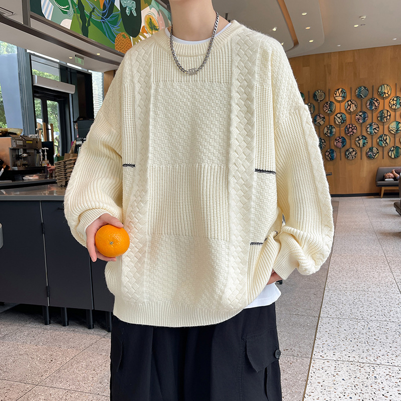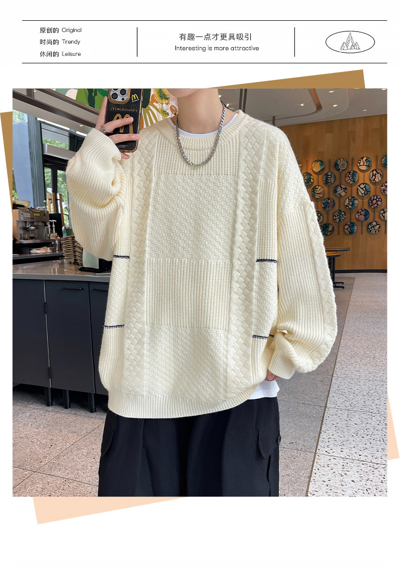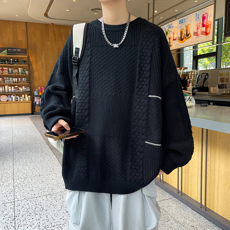 홍콩 스타일 스트라이프 라운드넥 스웨터 남성용 루즈핏 캐주얼 트렌디 두꺼운 니트 스웨터 홍콩 스타일 스트라이프 8410