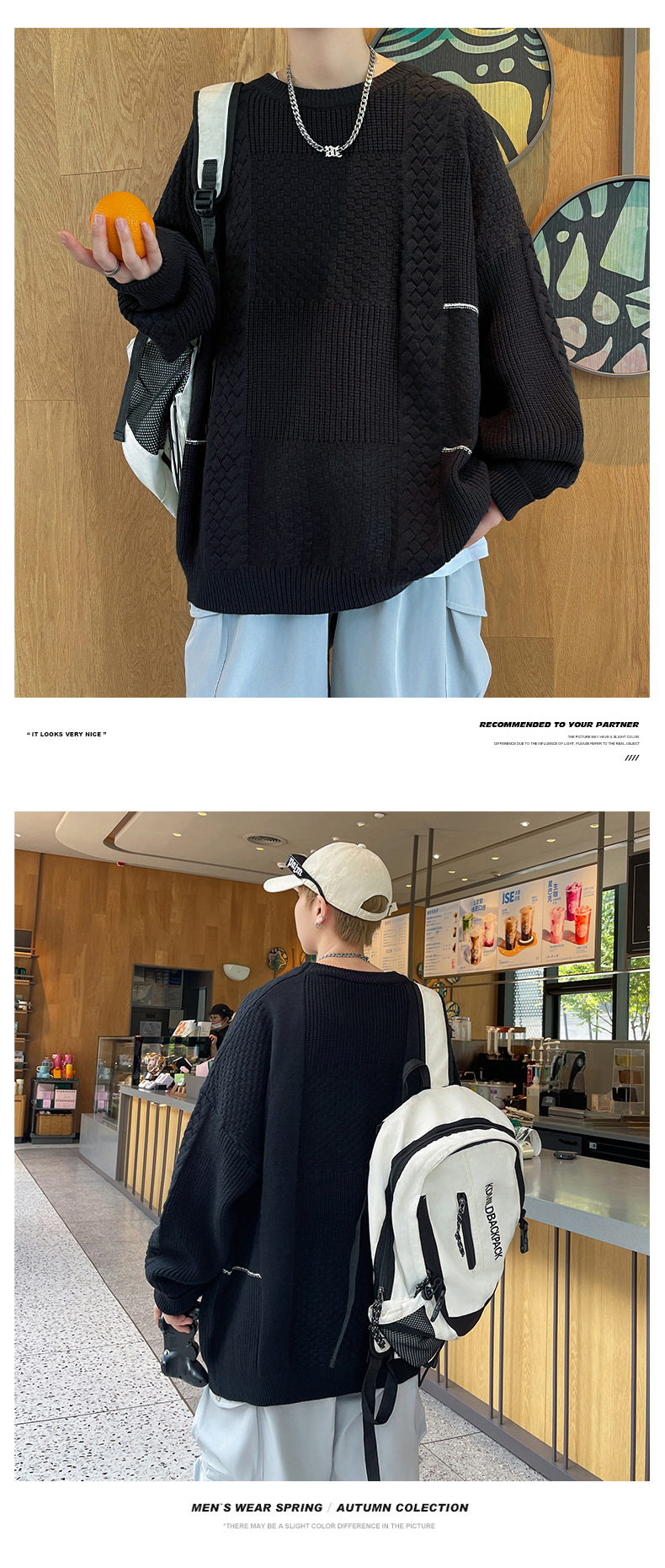 홍콩 스타일 스트라이프 라운드넥 스웨터 남성용 루즈핏 캐주얼 트렌디 두꺼운 니트 스웨터 홍콩 스타일 스트라이프 8410스토어 가기