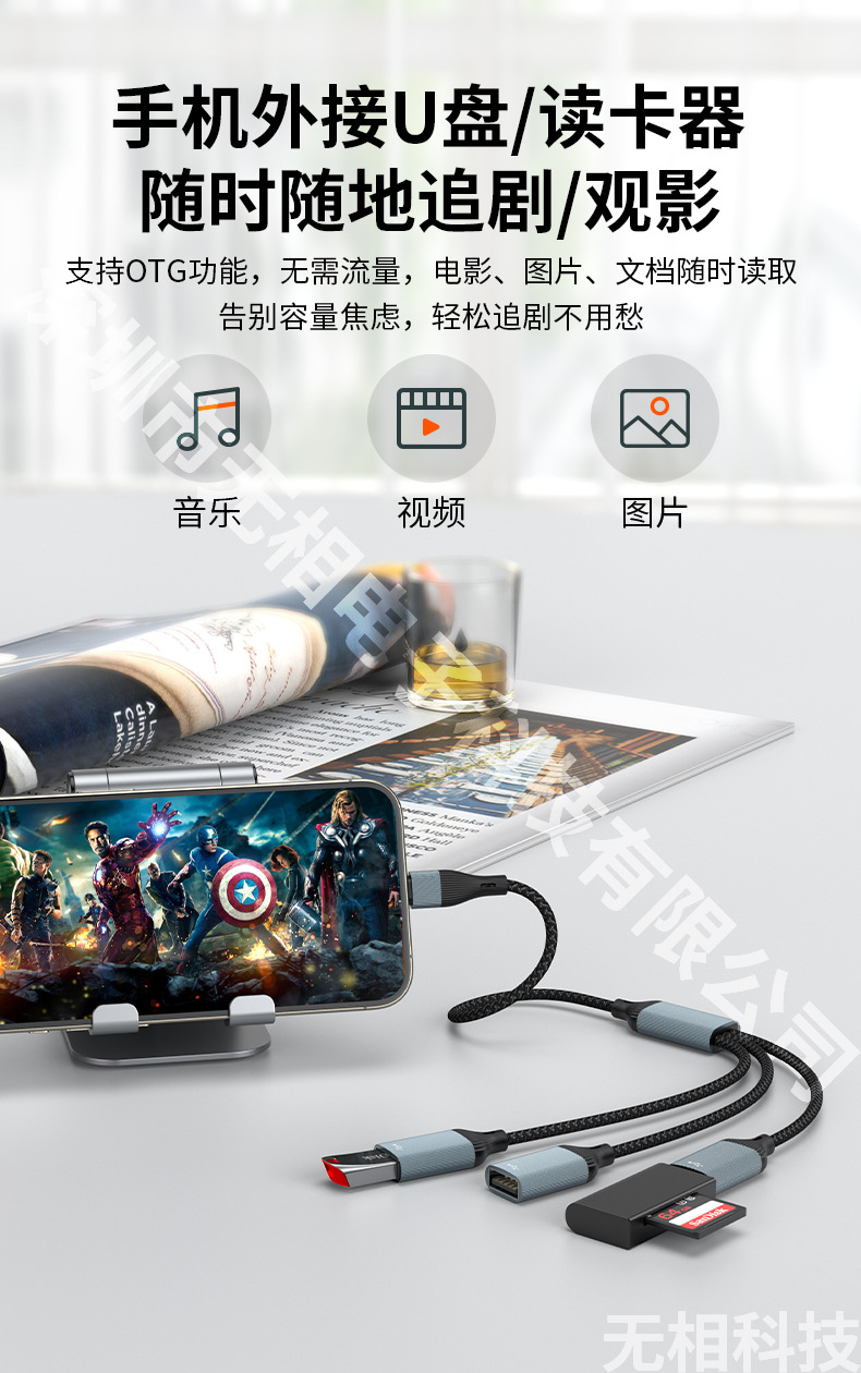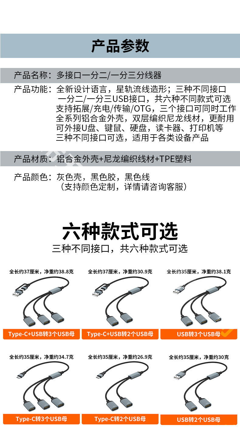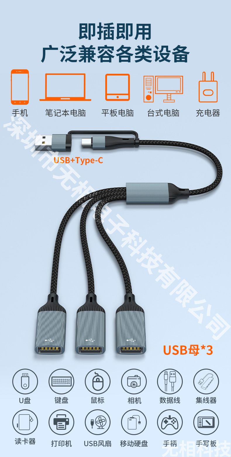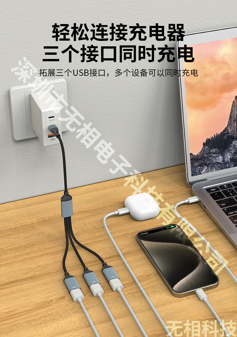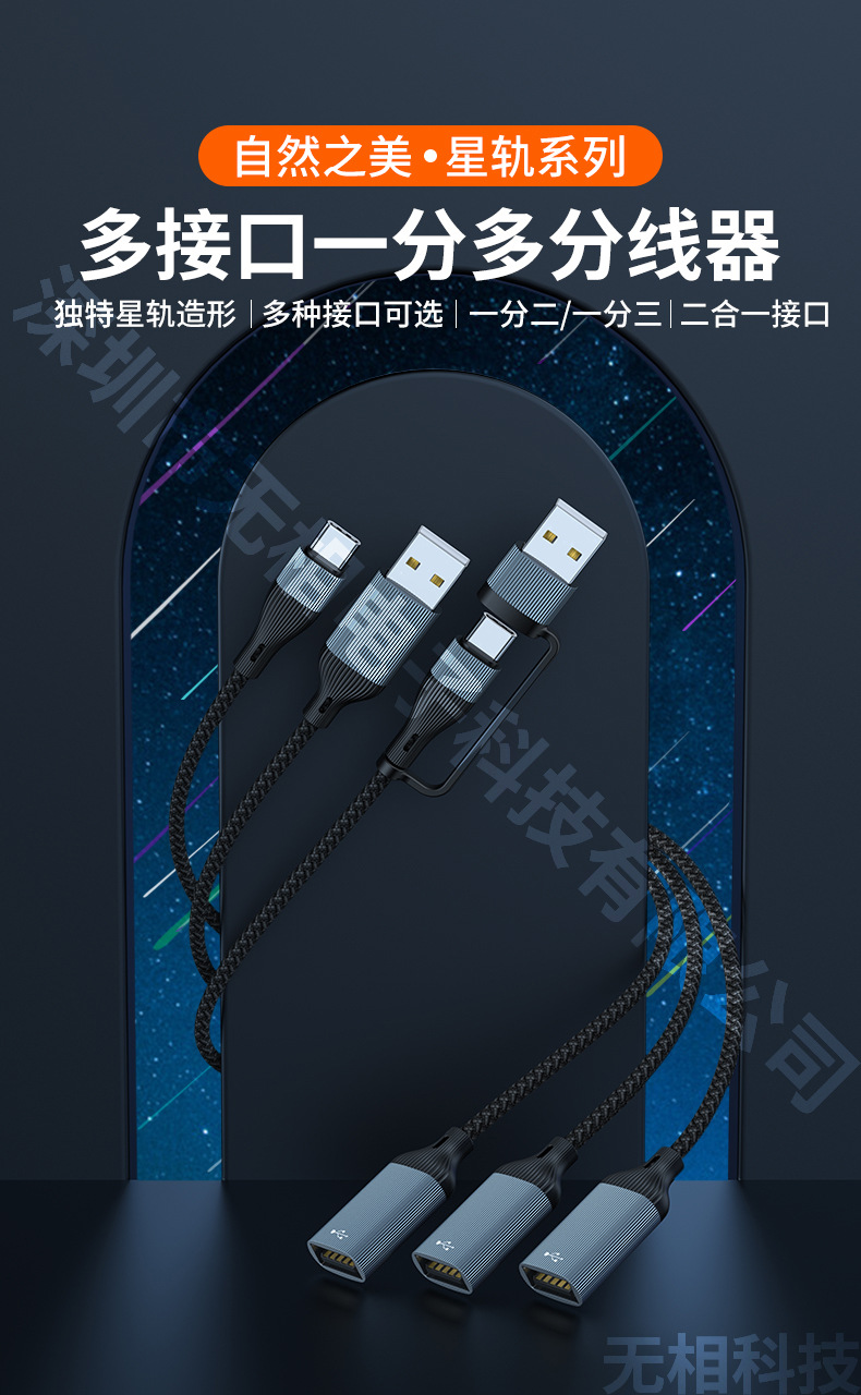 스타 트랙 유형-c 확장기 1-3 충전 라인 전송 스플리터 USB 어댑터 OTG 컴퓨터 확장 도크