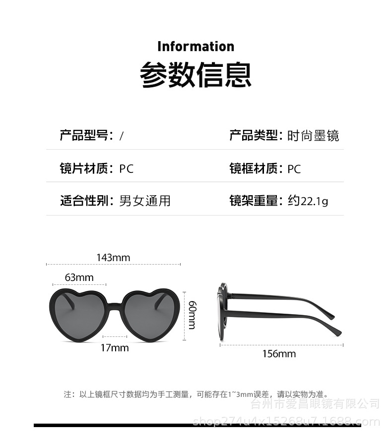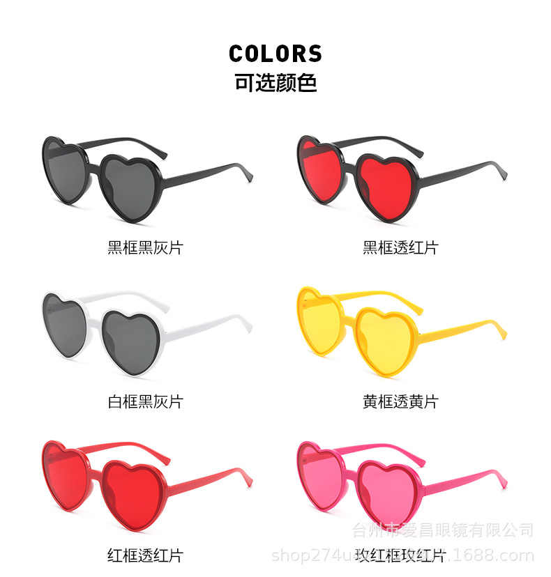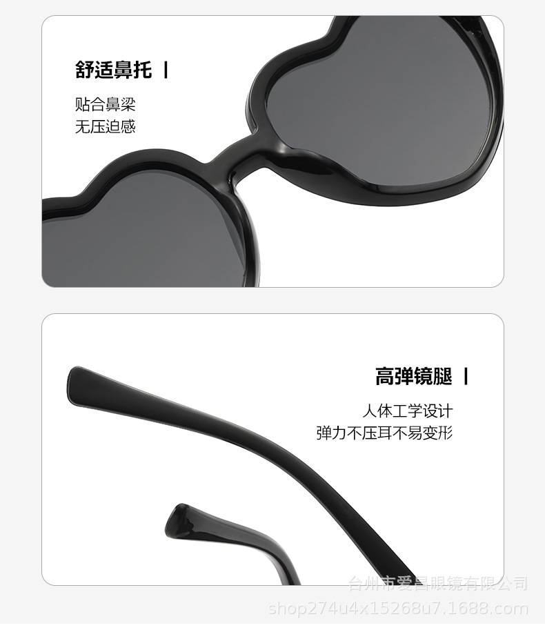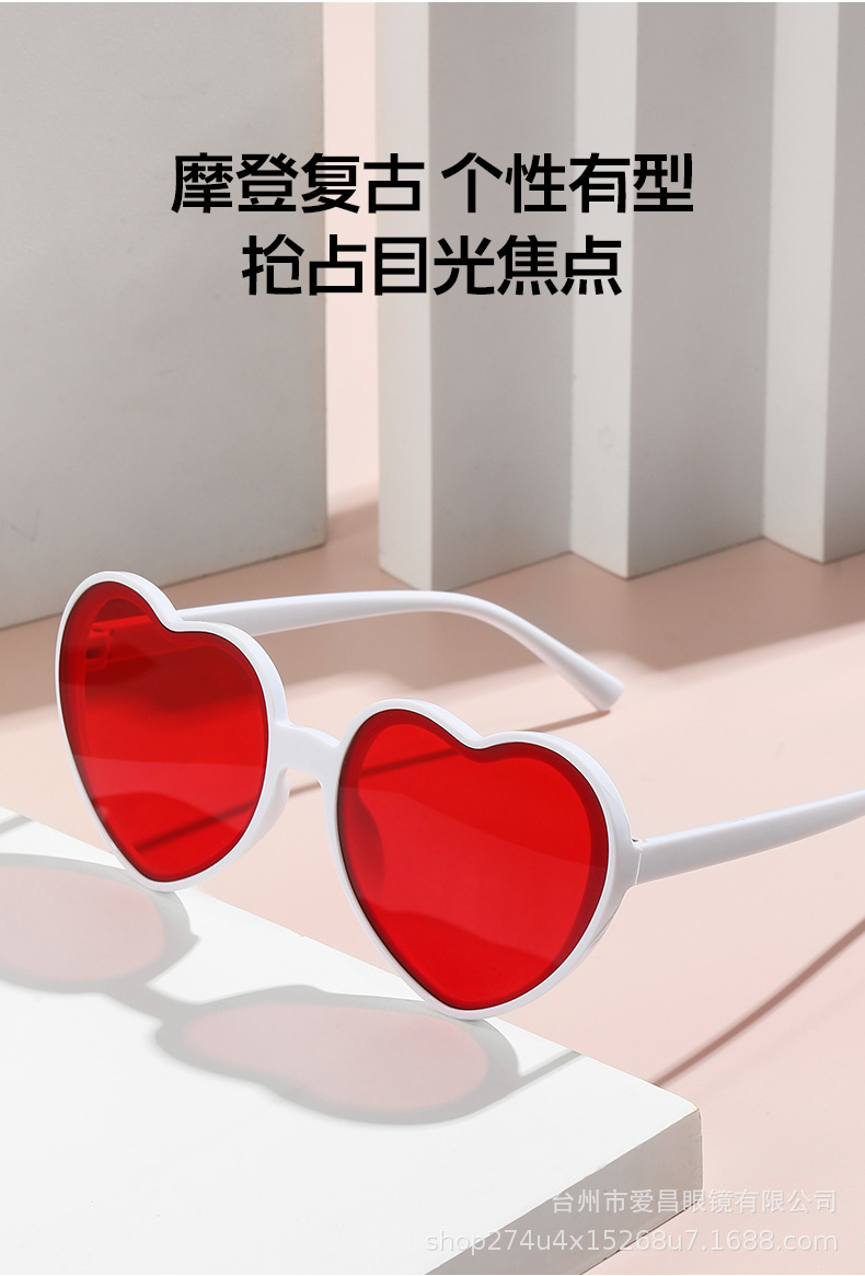 고전적인 사랑 선글라스와 새로운 Tiktok 유럽과 미국의 성격 폭발 트렌드 패션 심장 선글라스