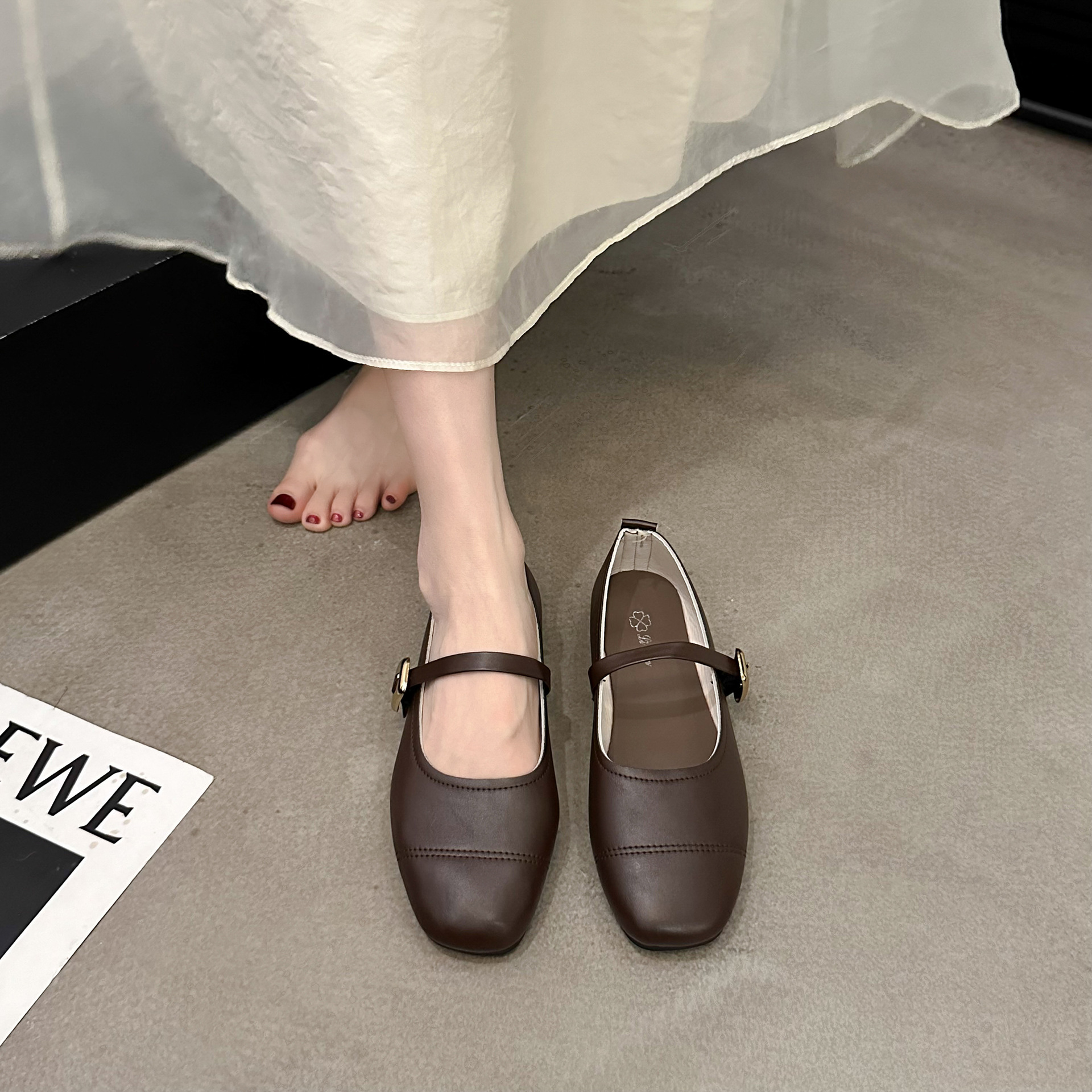 2024 년 봄 새로운 한국식 광장 발가락 플랫 얕은 부드러운 밑바닥 신발 패션 싱글 신발 실버 메리 제인 신발스토어 가기