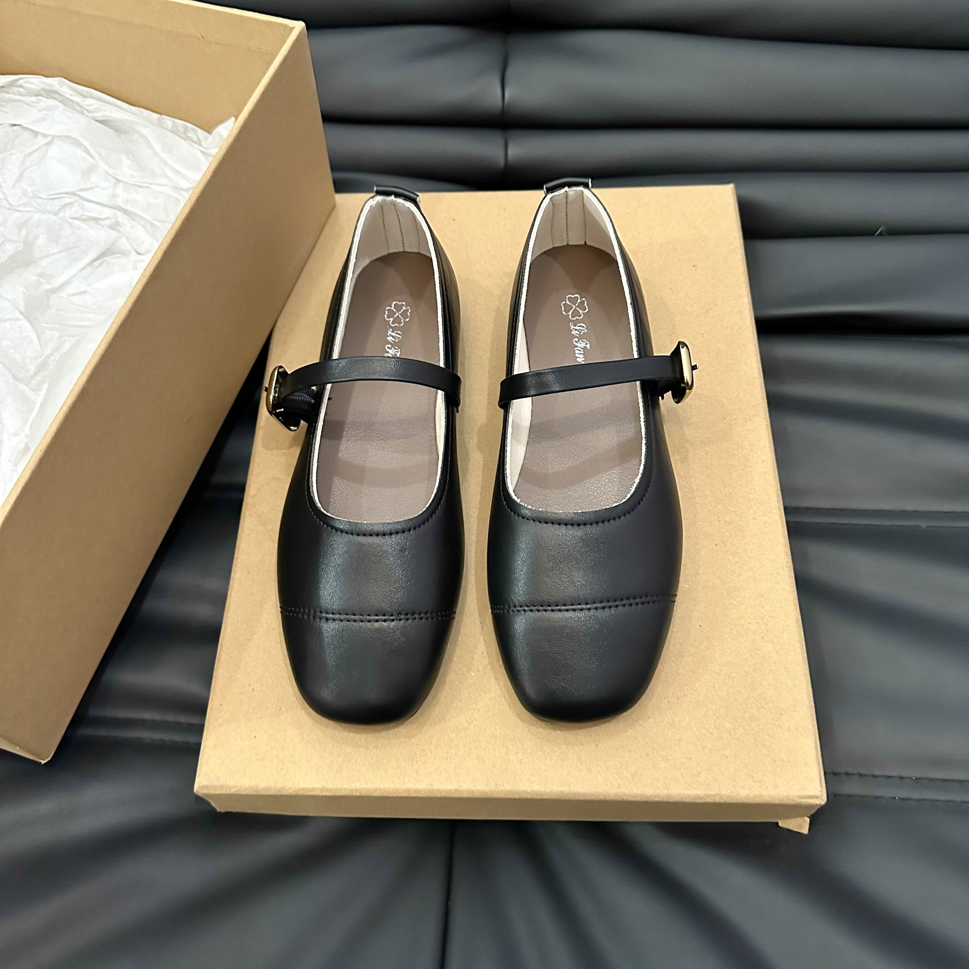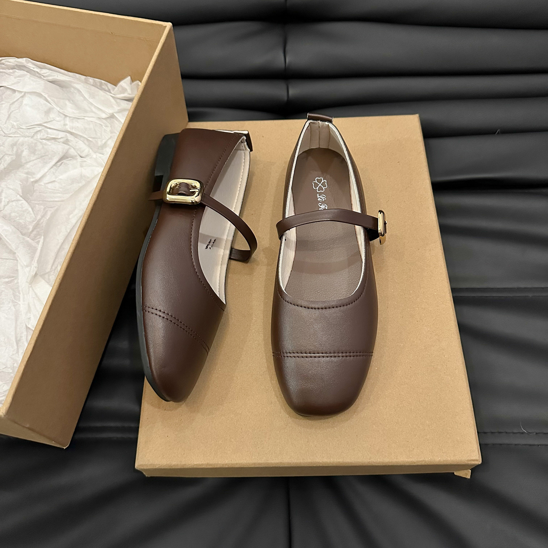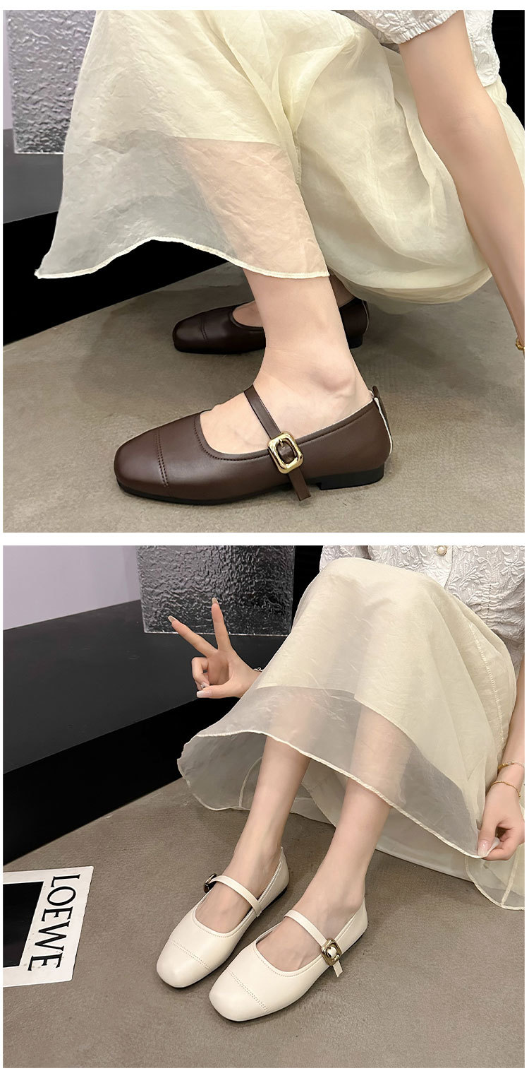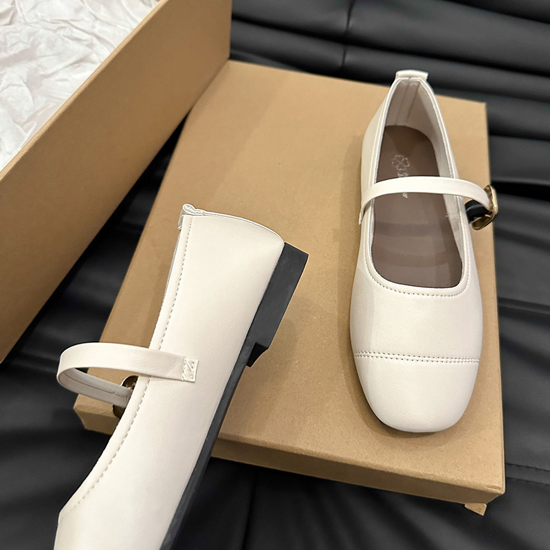 2024 년 봄 새로운 한국식 광장 발가락 플랫 얕은 부드러운 밑바닥 신발 패션 싱글 신발 실버 메리 제인 신발