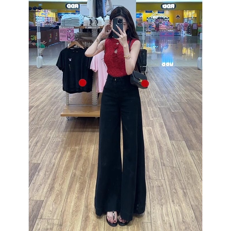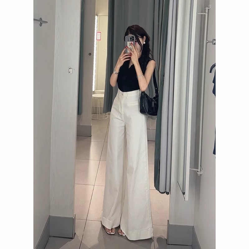 화이트 우아한 올 매치 하이 웨이스트 울트라 와이드 레그 청바지 여성의 2024 가을 새 플레어 커버 슬림 마이크로 플레어 바지스토어 가기